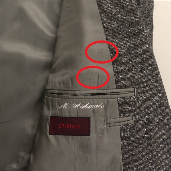 裏地状態:JA+A+B+E(ジャケットの左内胸裏地に引っかきキズが見受けられます。裏地部分となりますので普段のご着用には問題なく、今後もまだまだご愛用頂けるお品です。)