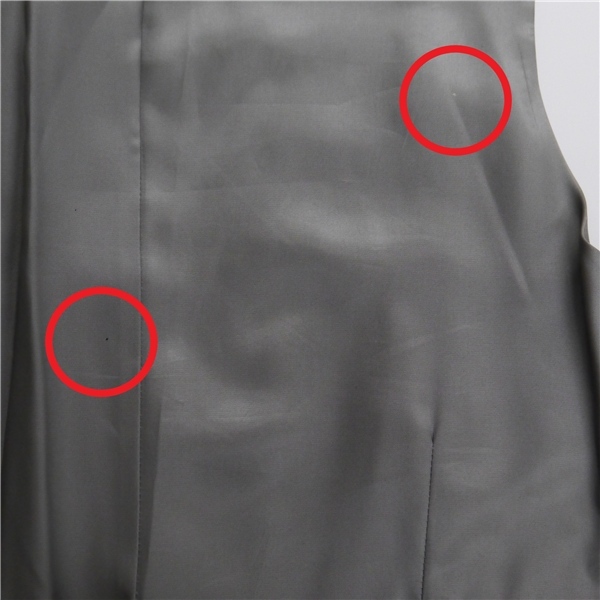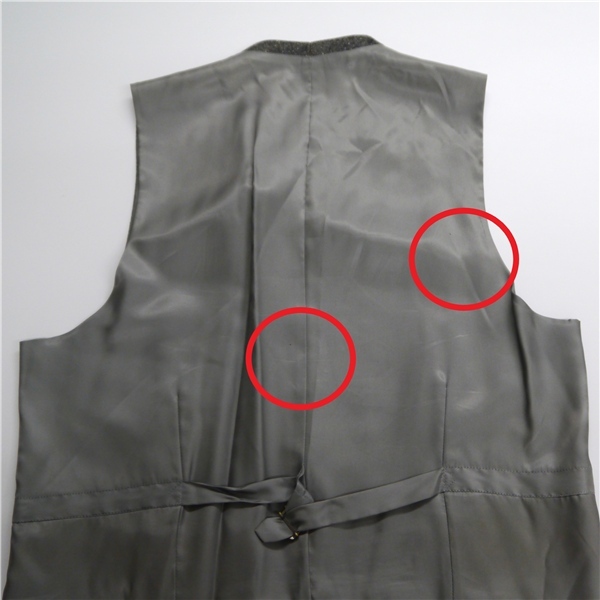 表地(全体的)状態:B(ジャケットの左袖口付近に汚れが見受けられます。ベスト背面に穴あきが見受けられます。その他の状態は良い事から、今後もまだまだご愛用頂けるお品だと思われます。)