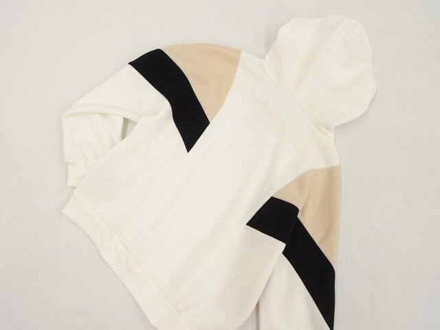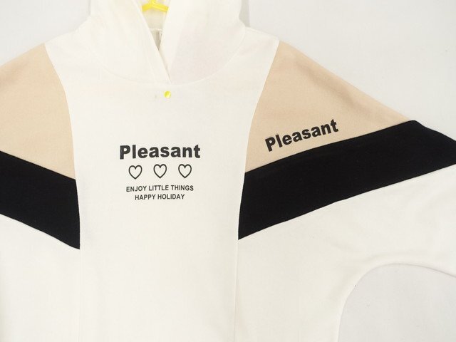 ドルマンスリーブ 長袖 裏起毛プルオーバーパーカー 140 ホワイト×ブラック×ペールオレンジ地&ブラック 英字