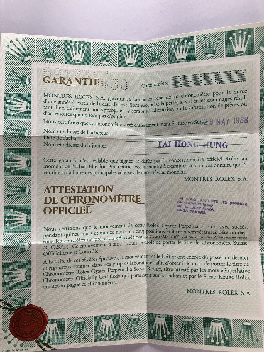 ■ROLEX Rシリアル 1987-1988年 69173 保証書