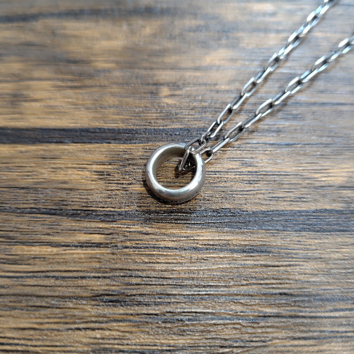 現行の甲丸(ラウンド)リングダイアモンドネックレスよりも小さくてシンプルなネックレストップ。