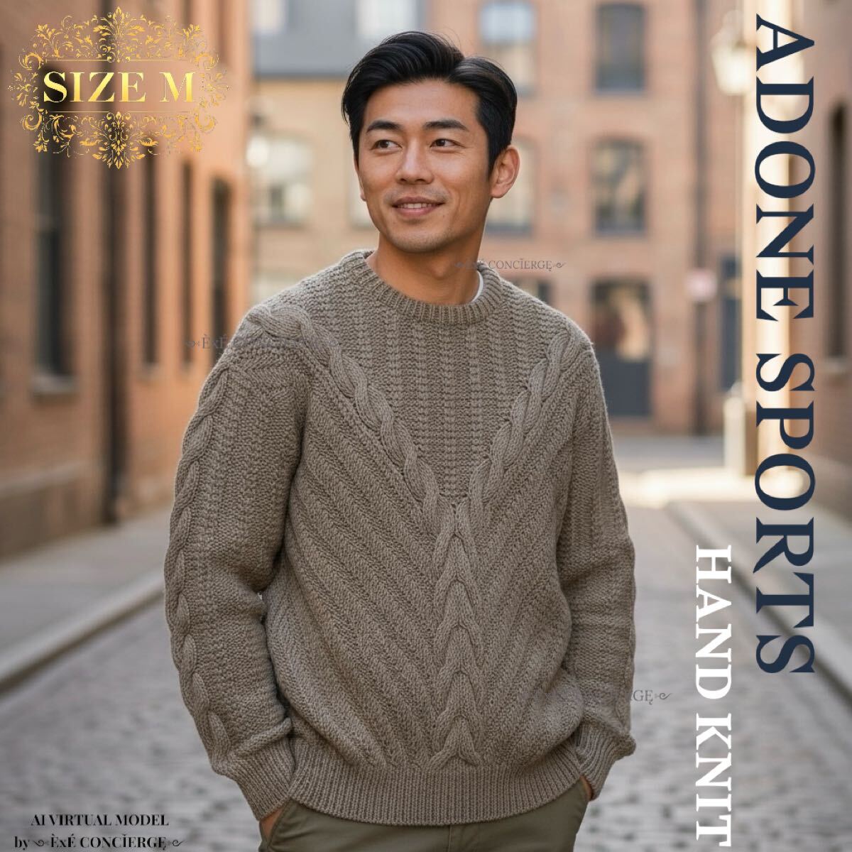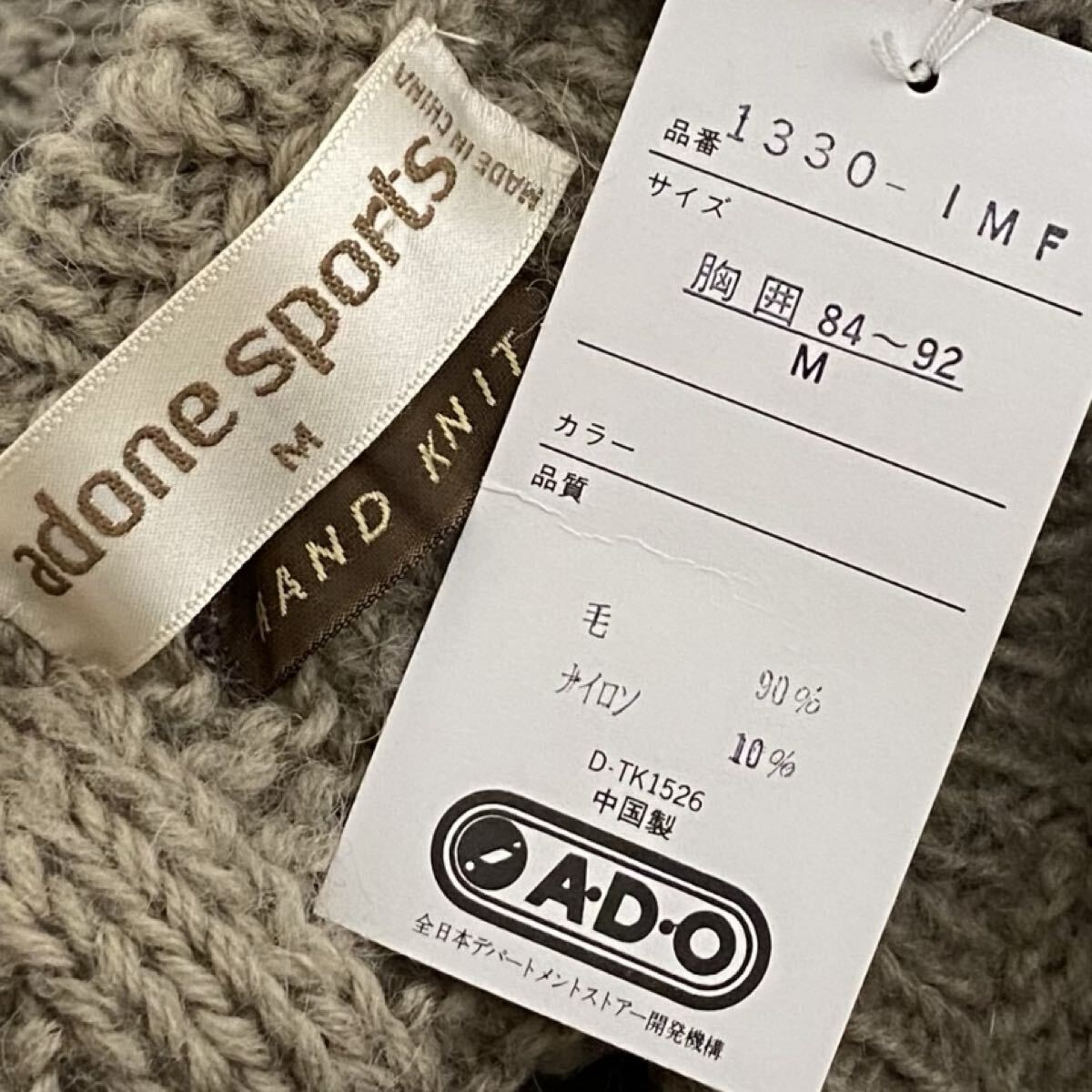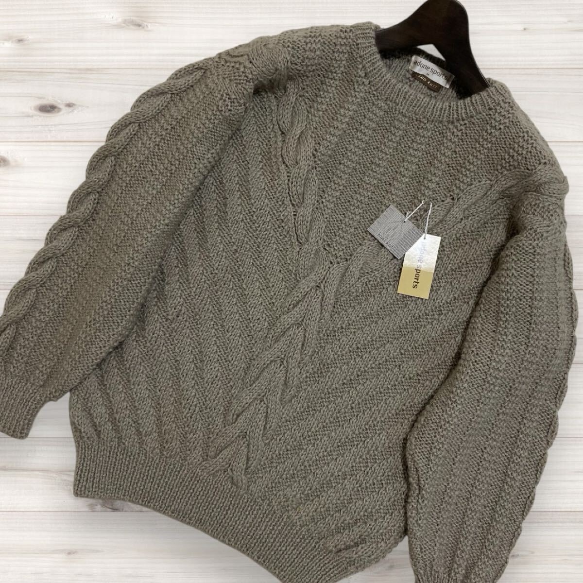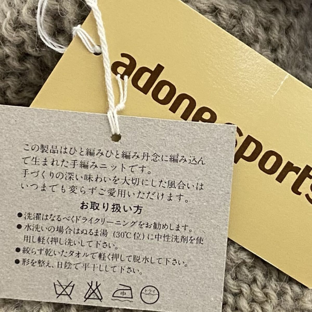 ADONE SPORTSのハンドニット。完売品。現在では希少な手編みアイテム。機械生産では辿り着けない丹念に編み込まれたアイテム。しっかりとした厚みのあるローゲージウールを贅沢に。ストレッチ性を備えており身体を包み込みます。大人の余裕感漂うゆったりシルエット。3Dニットのような立体的ケーブルデザイン。クルーネックでお顔周りすっきり。クリエイティビティとクラシックエレガンスの融合。カラーはグレージュ系。正規品。