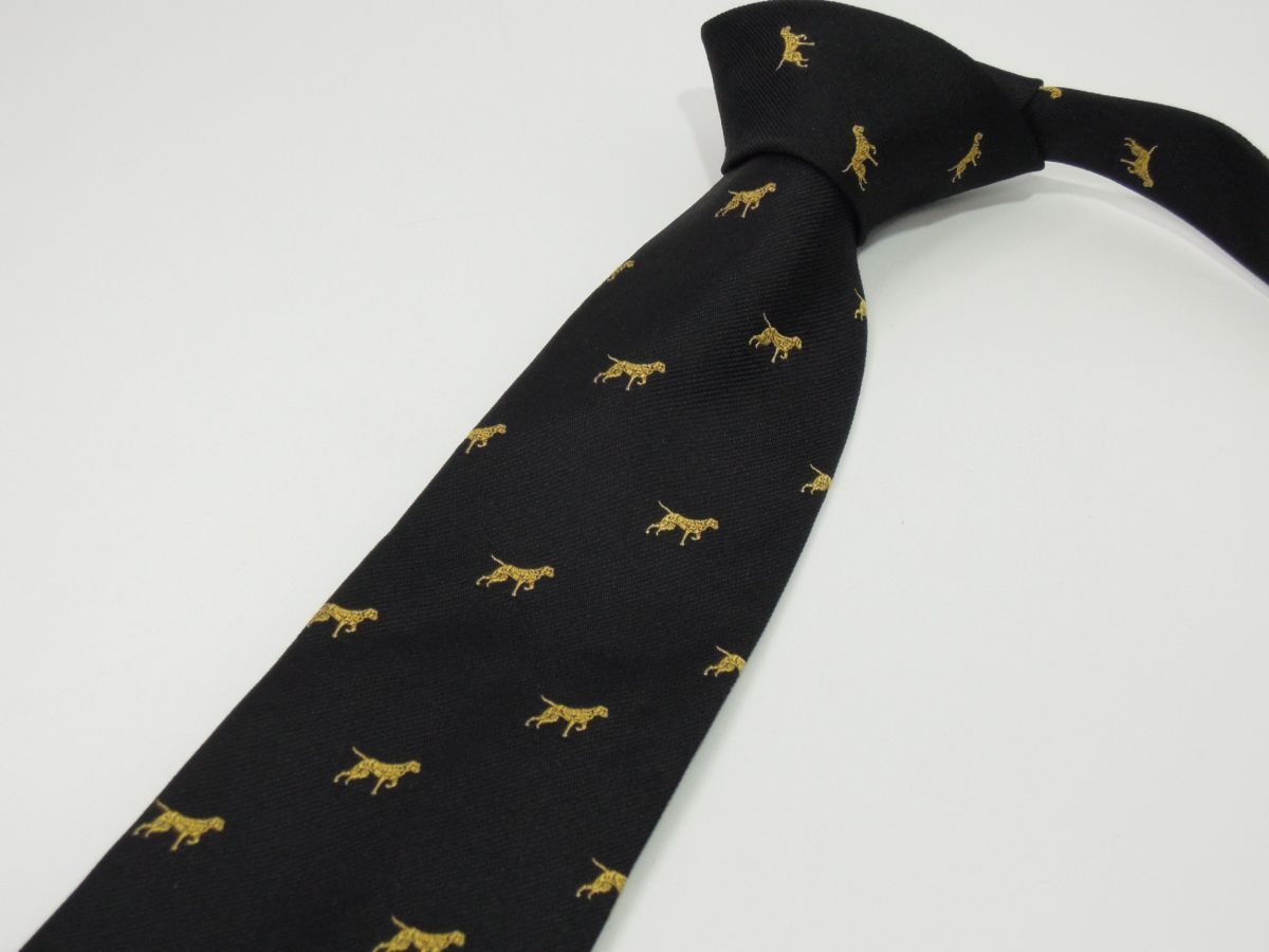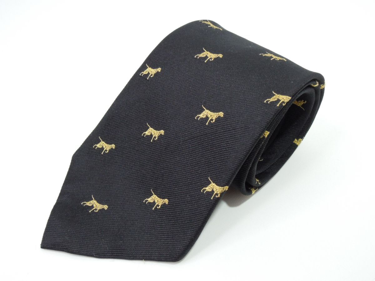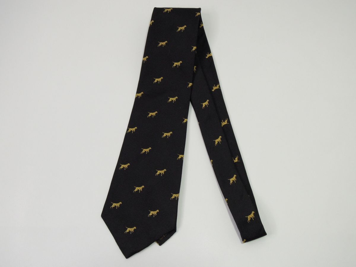 美品 Lauren Ralph Lauren ローレン ラルフローレン 狩猟犬刺繍 ポインター犬 シンプル アニマル小紋柄 ネクタイ ブラック 大剣幅9.7cm
