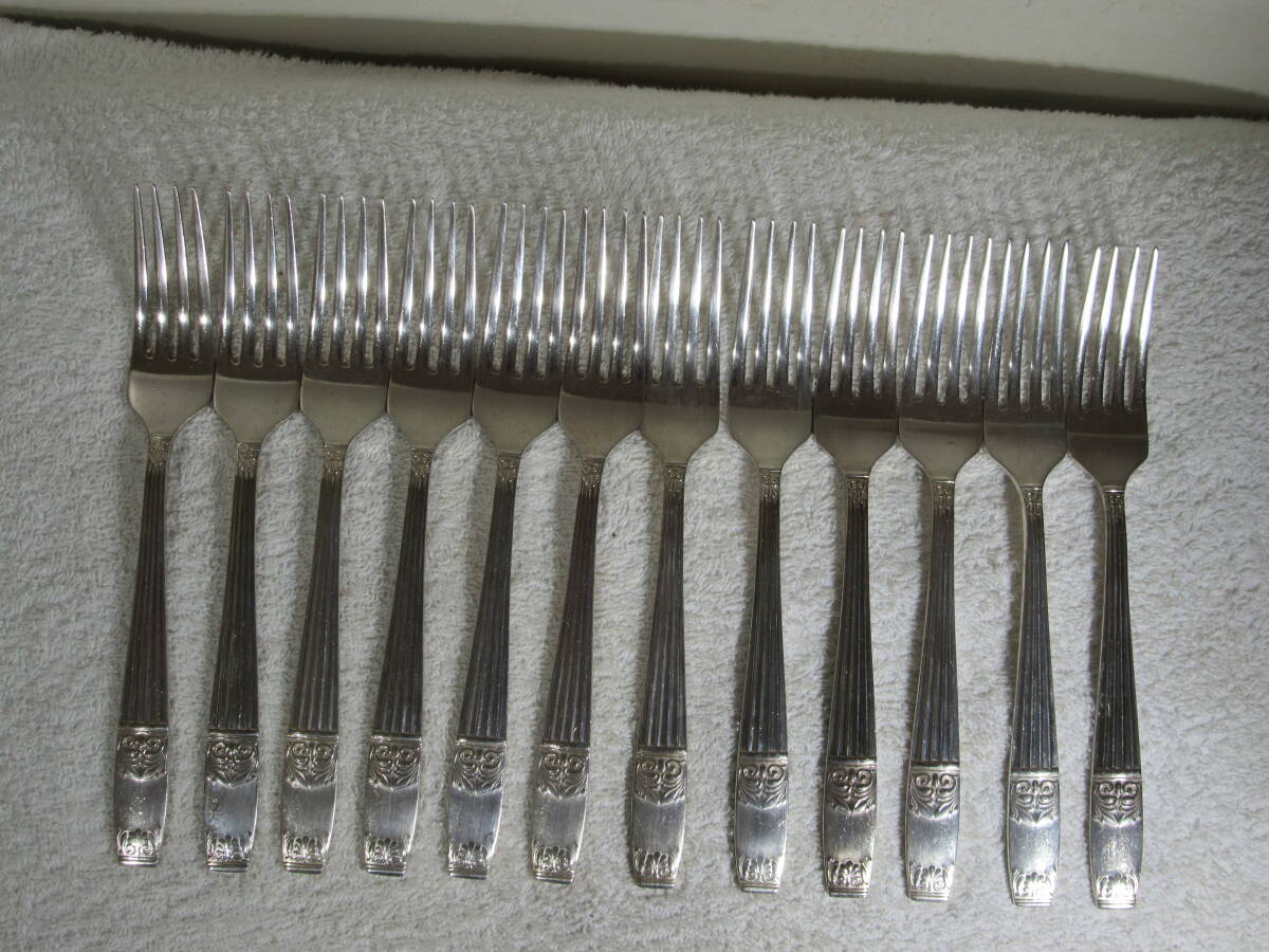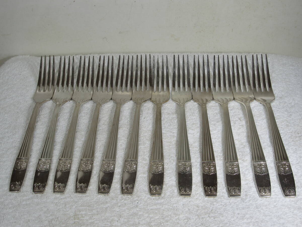 銀製品 大ぶり フォーク (EP ) ニッケルシルバー 重さは60g 長さが19,7cm 厚さ2,5mm  12本 中古美形でございます,