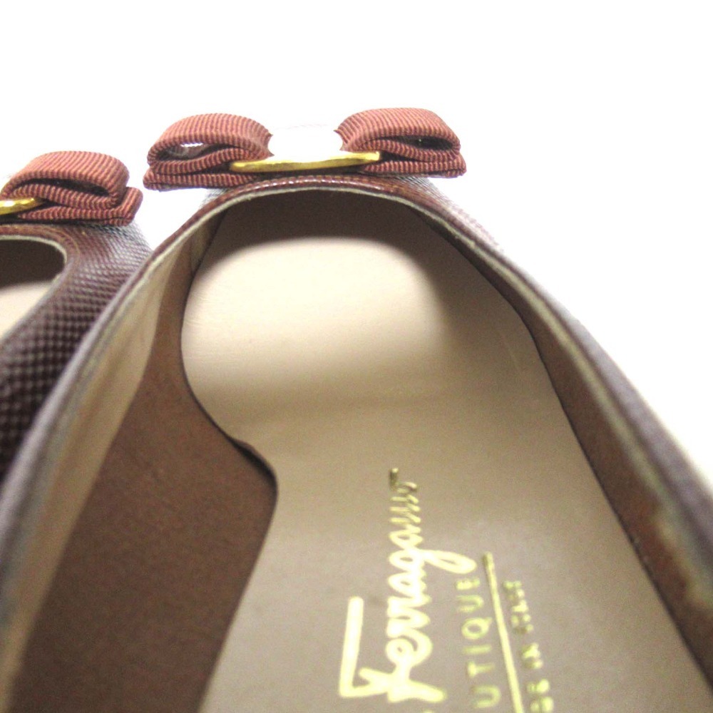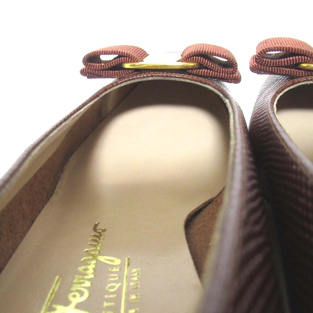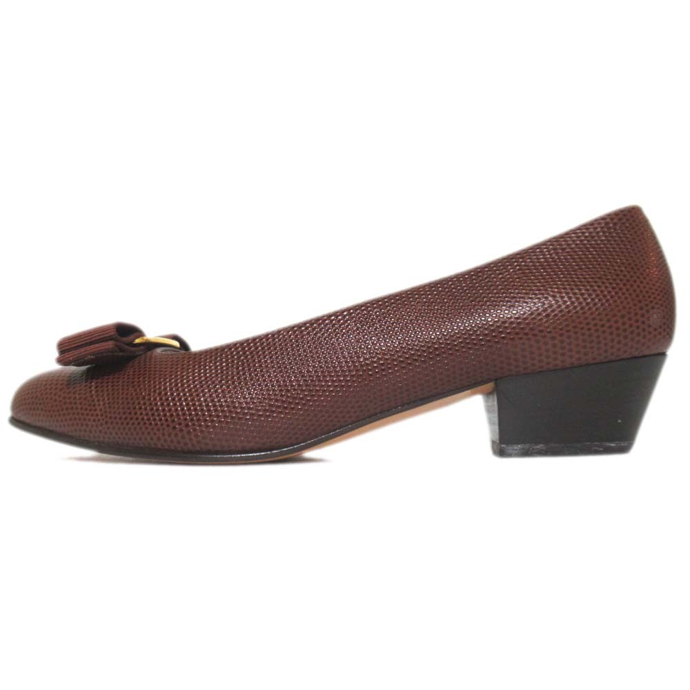 良品 Salvatore Ferragamo サルヴァトーレフェラガモ リザード型押し ヴァラリボン パンプス サイズ6.5C 24cm相当 ブラウン