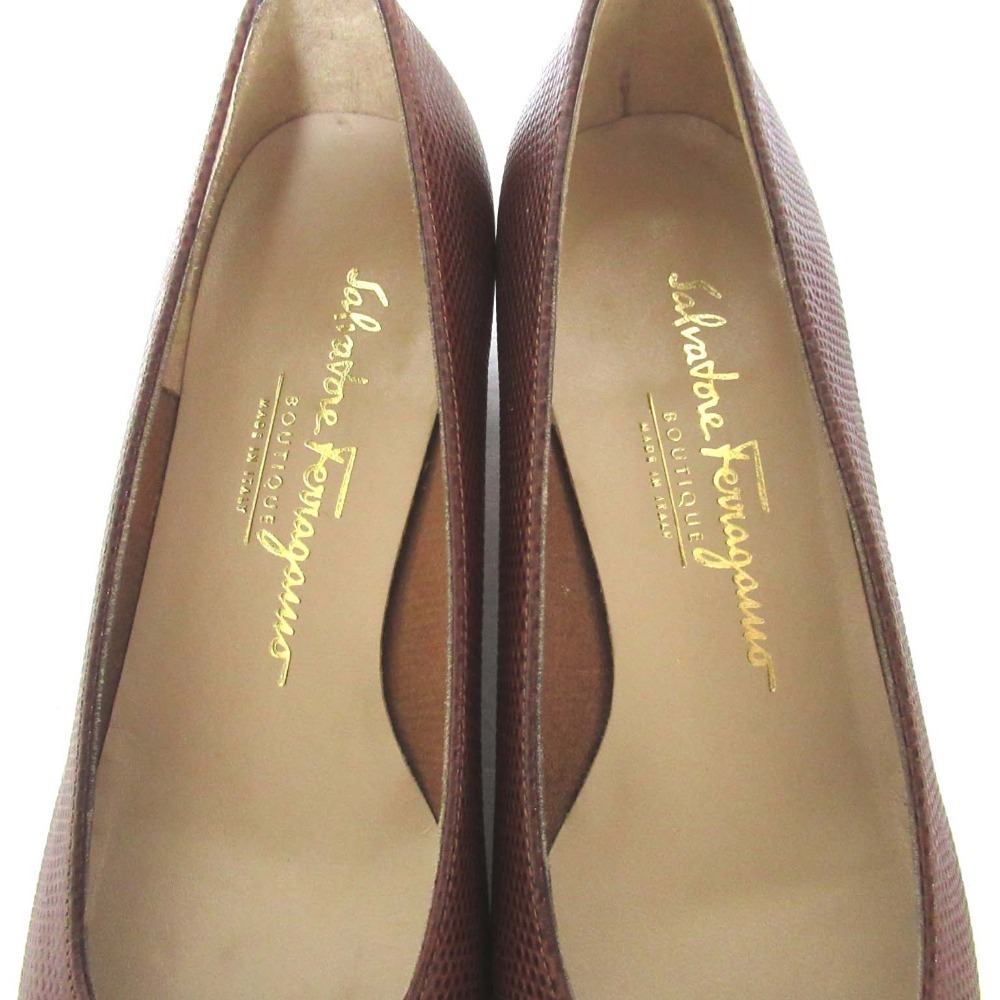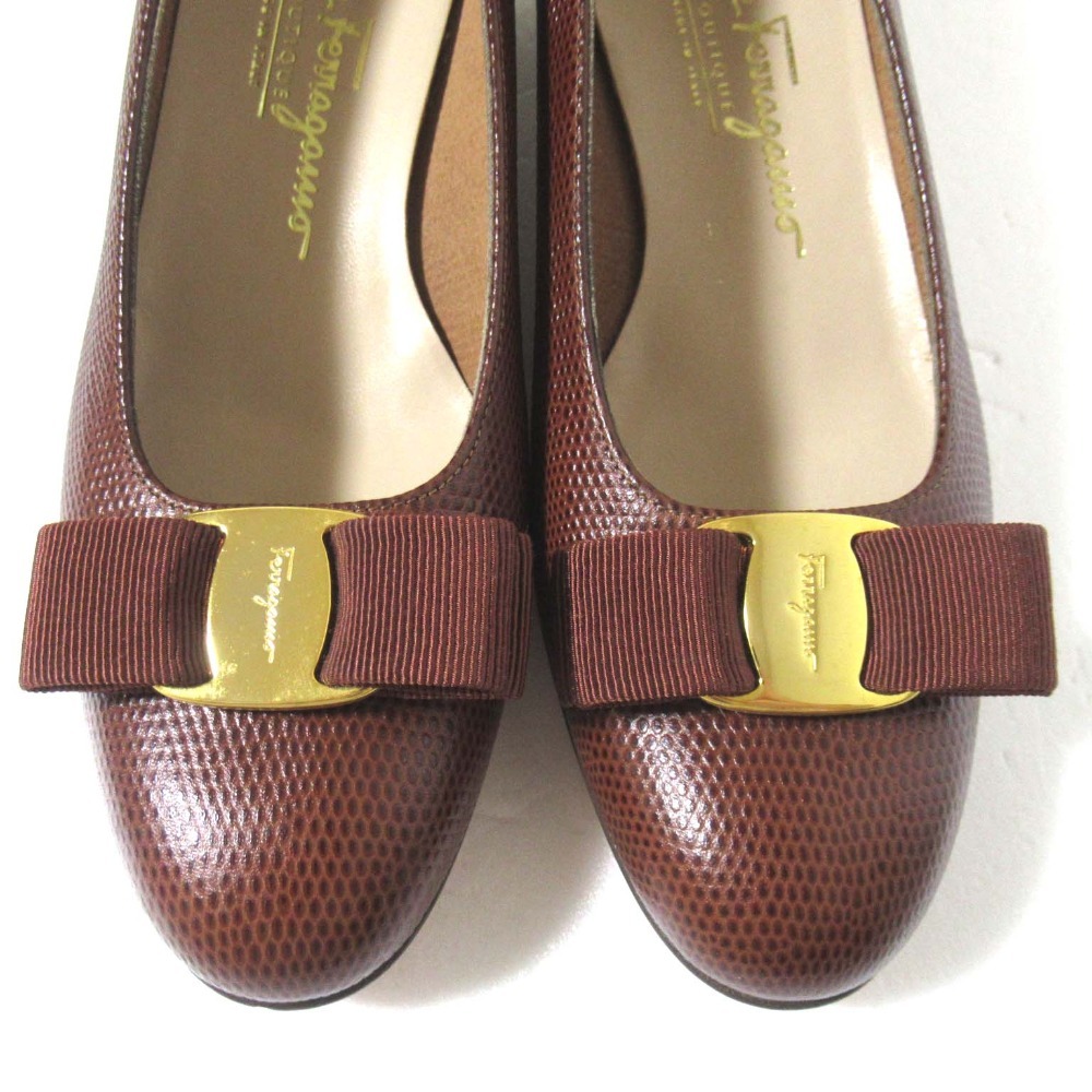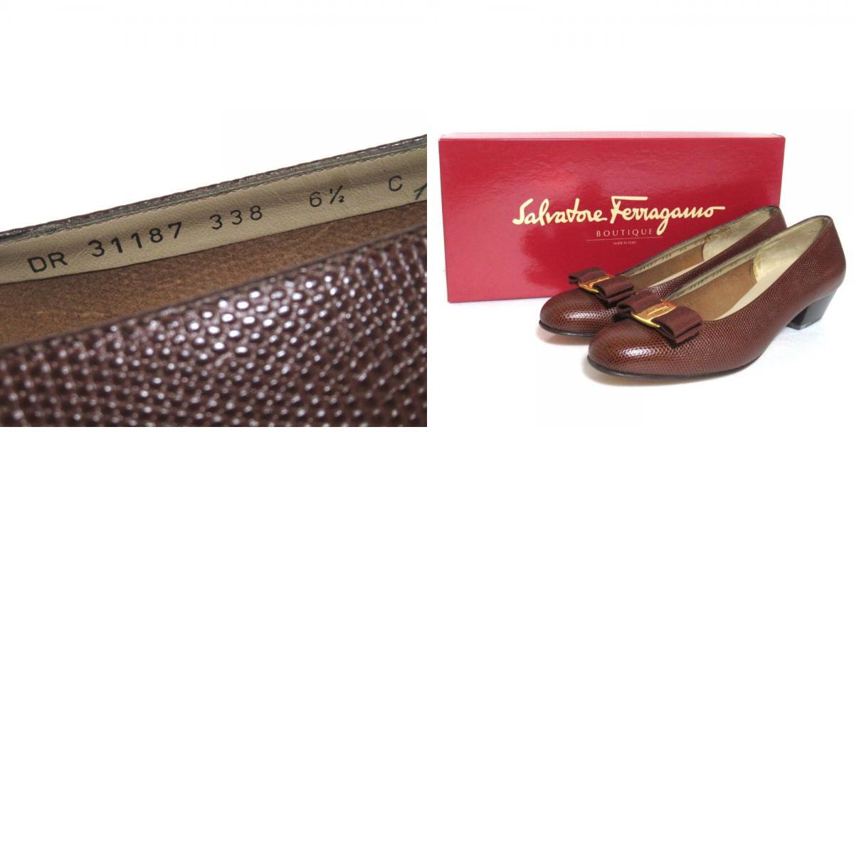 商品名:Salvatore Ferragamo サルヴァトーレフェラガモ リザード型押し ヴァラリボン パンプス サイズ6.5C 24cm相当 ブラウン