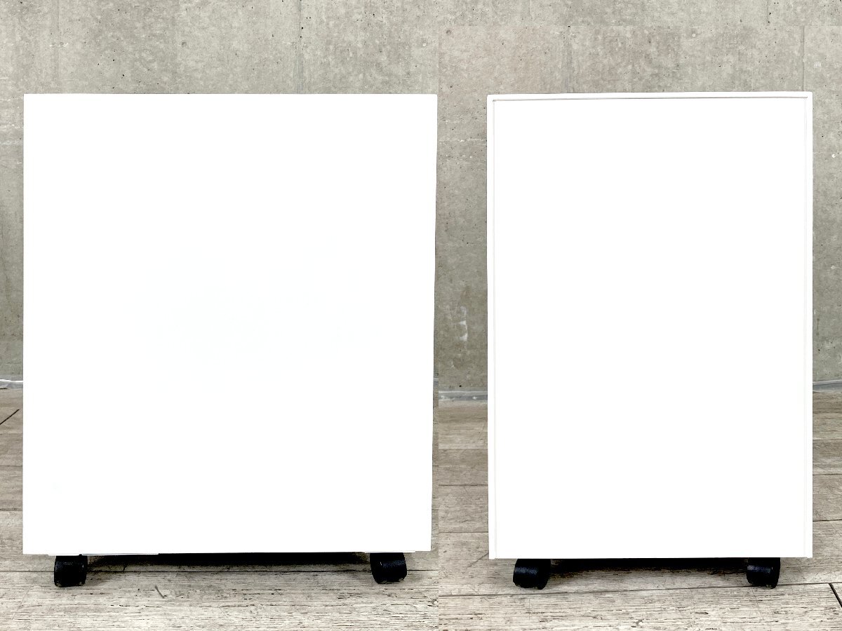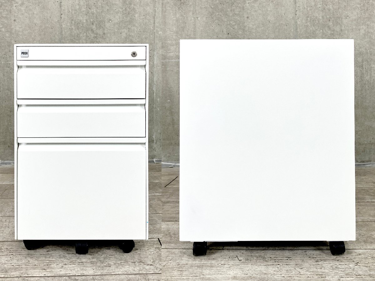 | ■ハーマンミラーのグループ会社『POSH(ポッシュ)』のシンプルなデザインのデスクインワゴンです。 最上段にはペントレー付き、鍵も付属しておりますので、大変おススメの商品です。 ■色/白 ■サイズ:W400 x D505 x H630 ■状態/全体的に細かいすれ傷がございます。(写真参照) 目立つ大きなダメージもなく、まだまだ気持ちよくお使いいただけます。 中古品ということをご理解いただき、ご入札をお願いいたします。 |