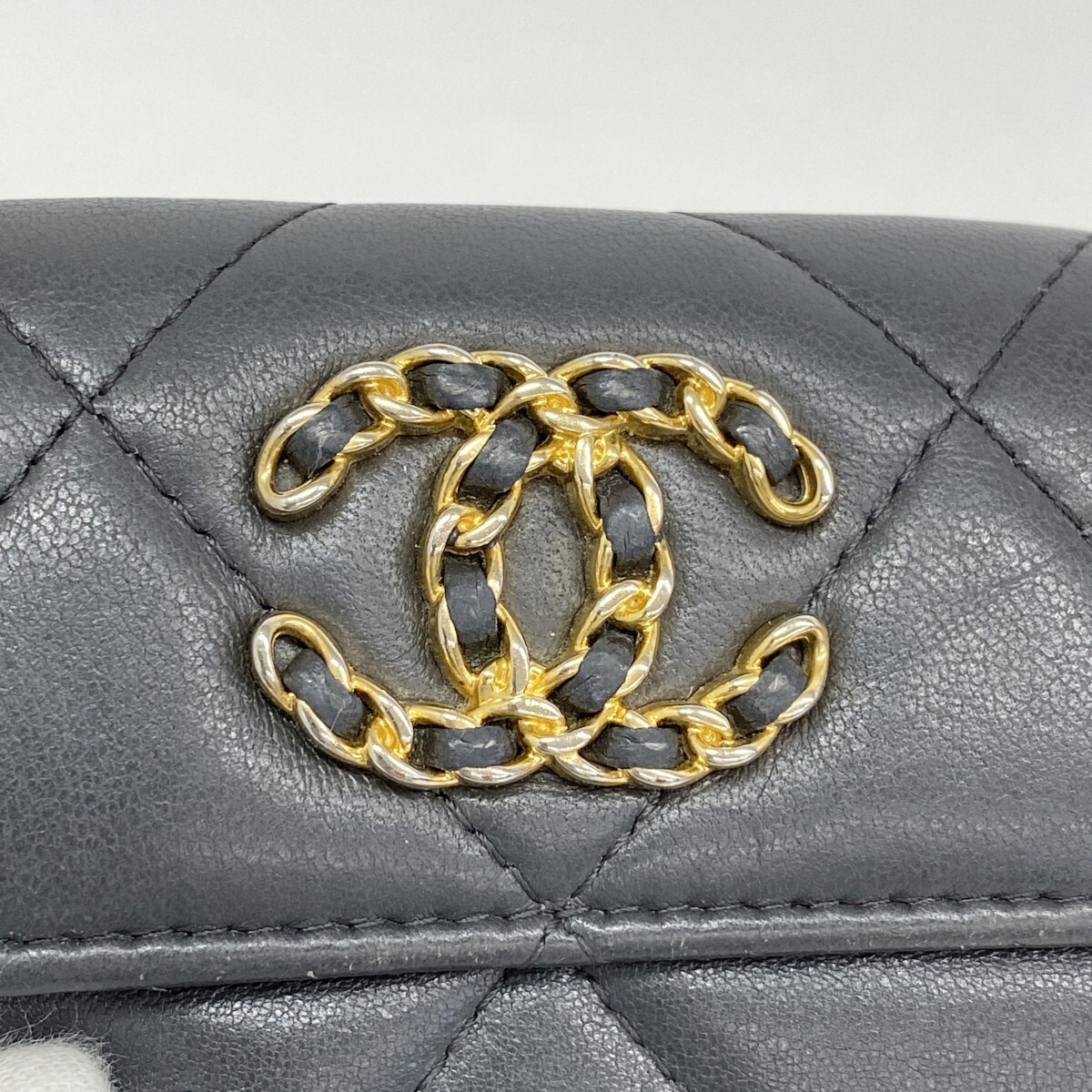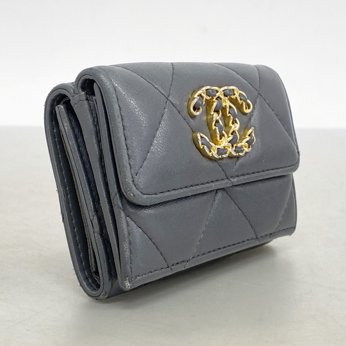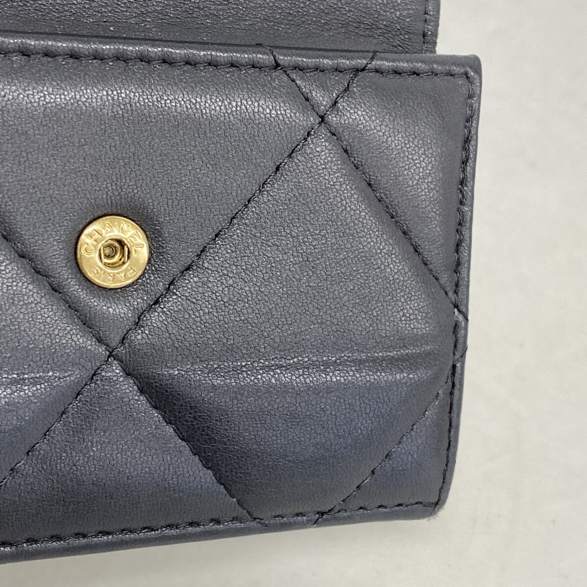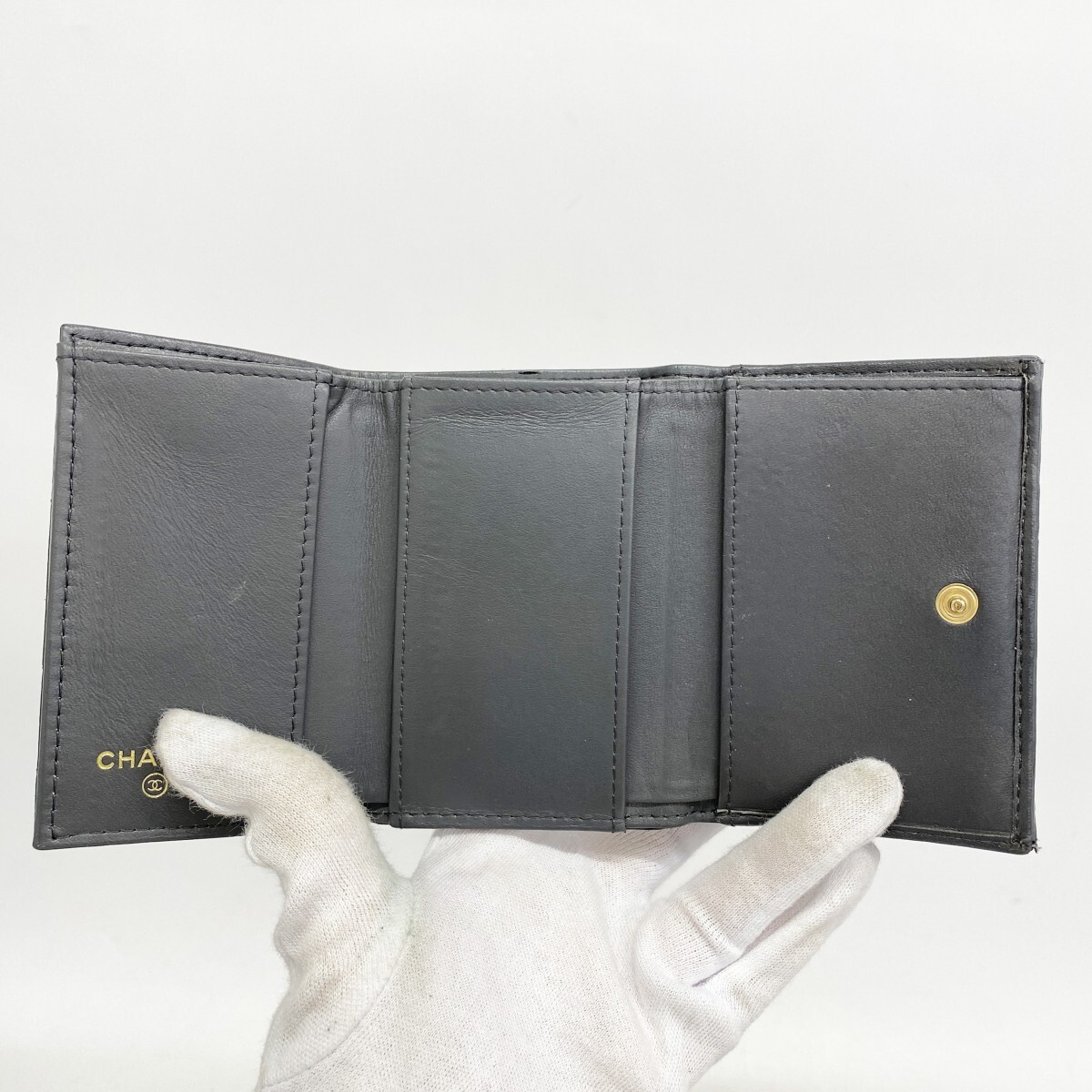 【5mc3568】シャネル 三つ折り財布 シャネル1 ラムスキン ダークグレー ゴールド金具【中古】レディース
