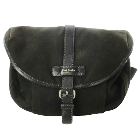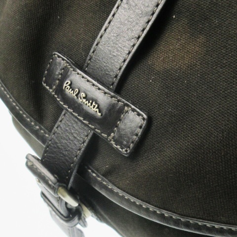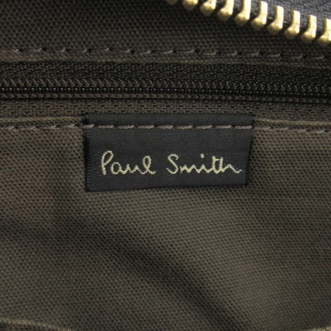 ポールスミス PAUL SMITH ショルダーバッグ ボディバック クロスボディ キャンバス レザー 革 ロゴ 焦げ茶 ダークブラウン