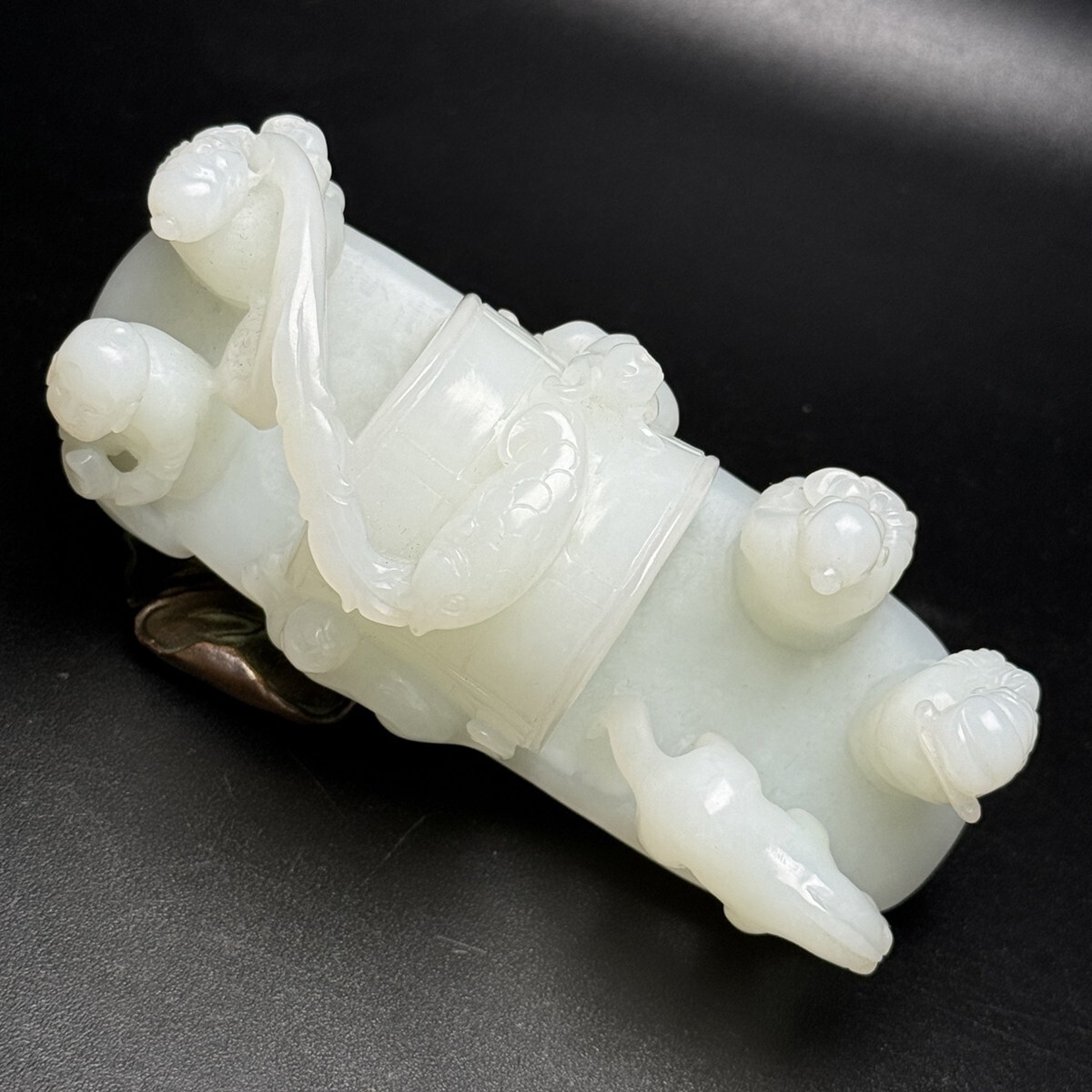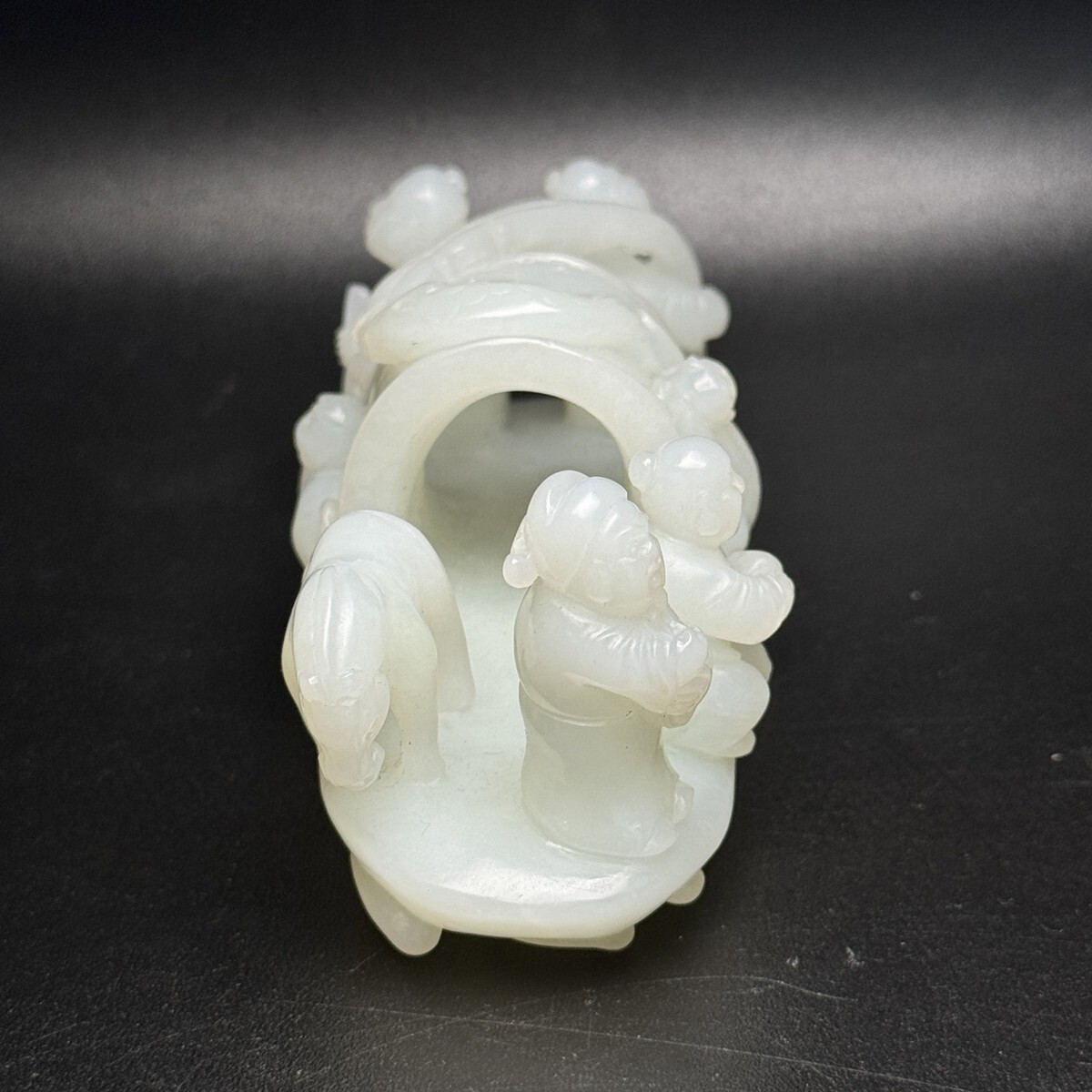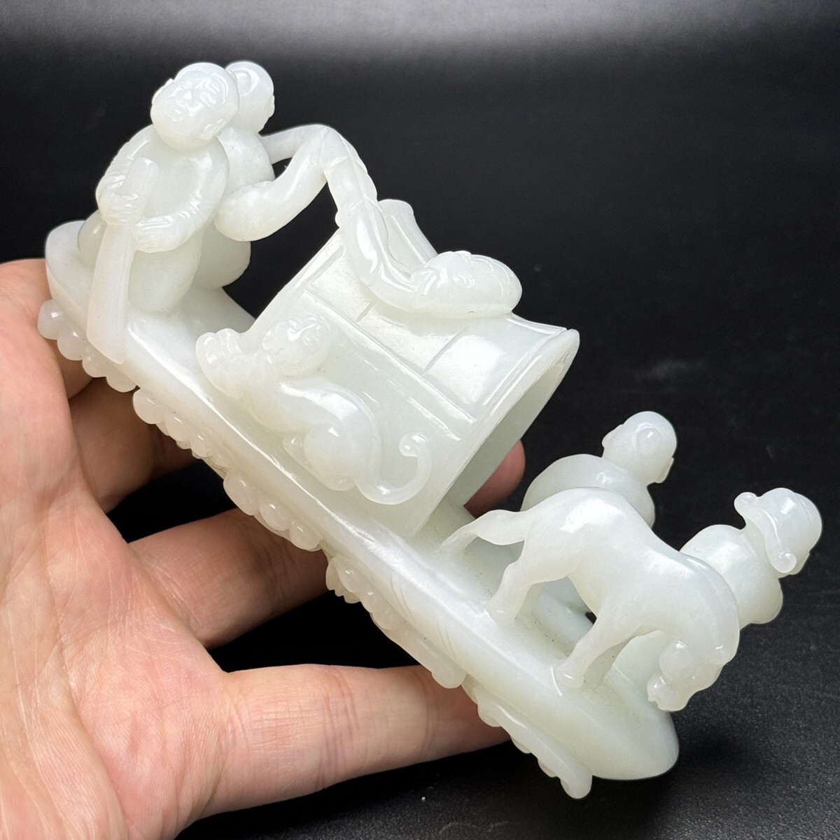 「清時代 和田玉 白玉彫り 人丁興旺 馬到成功 天下太平擺件」極細工 擺件 中国古賞物 古美術 旧蔵出