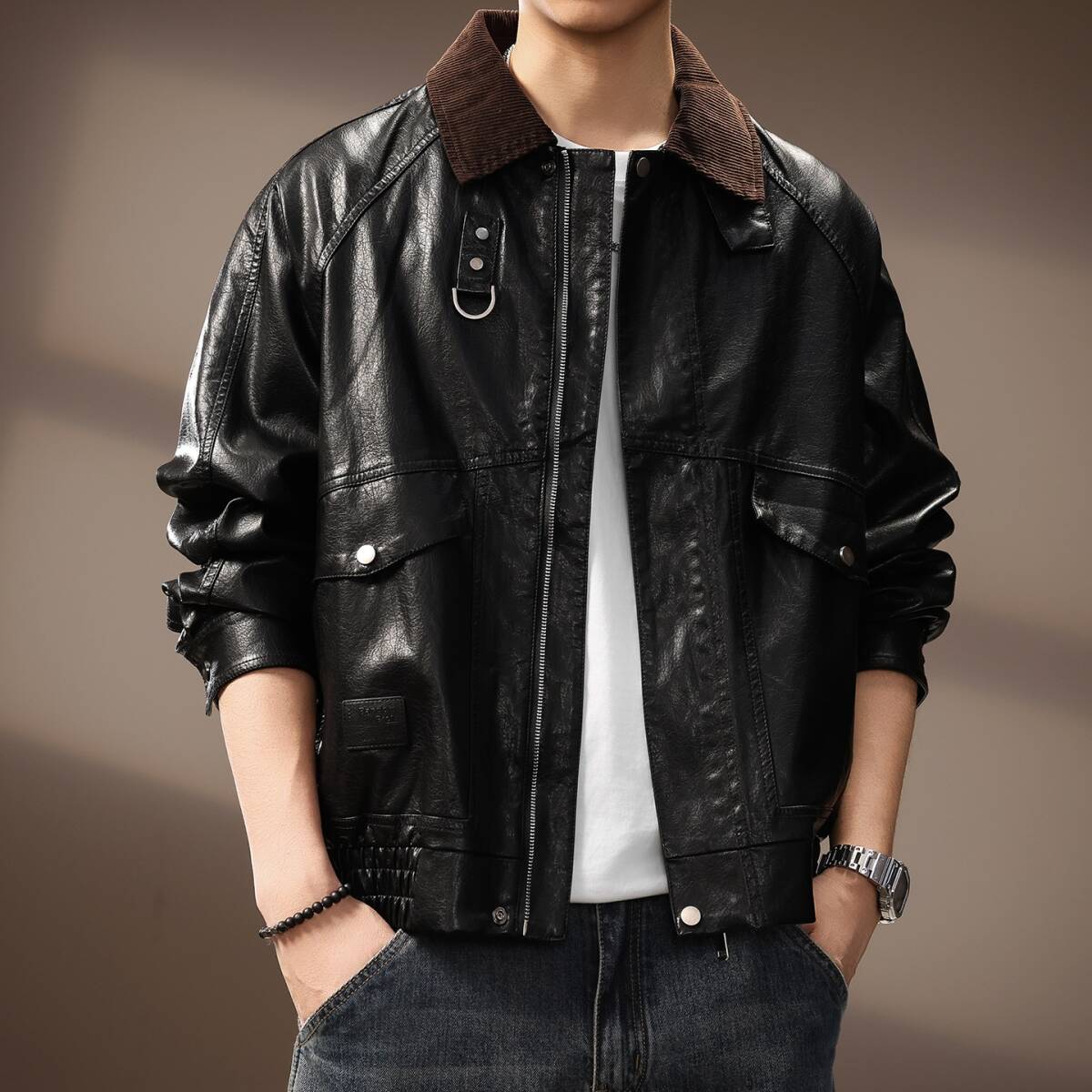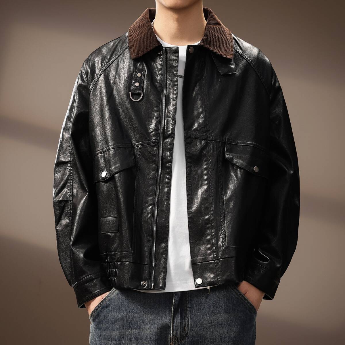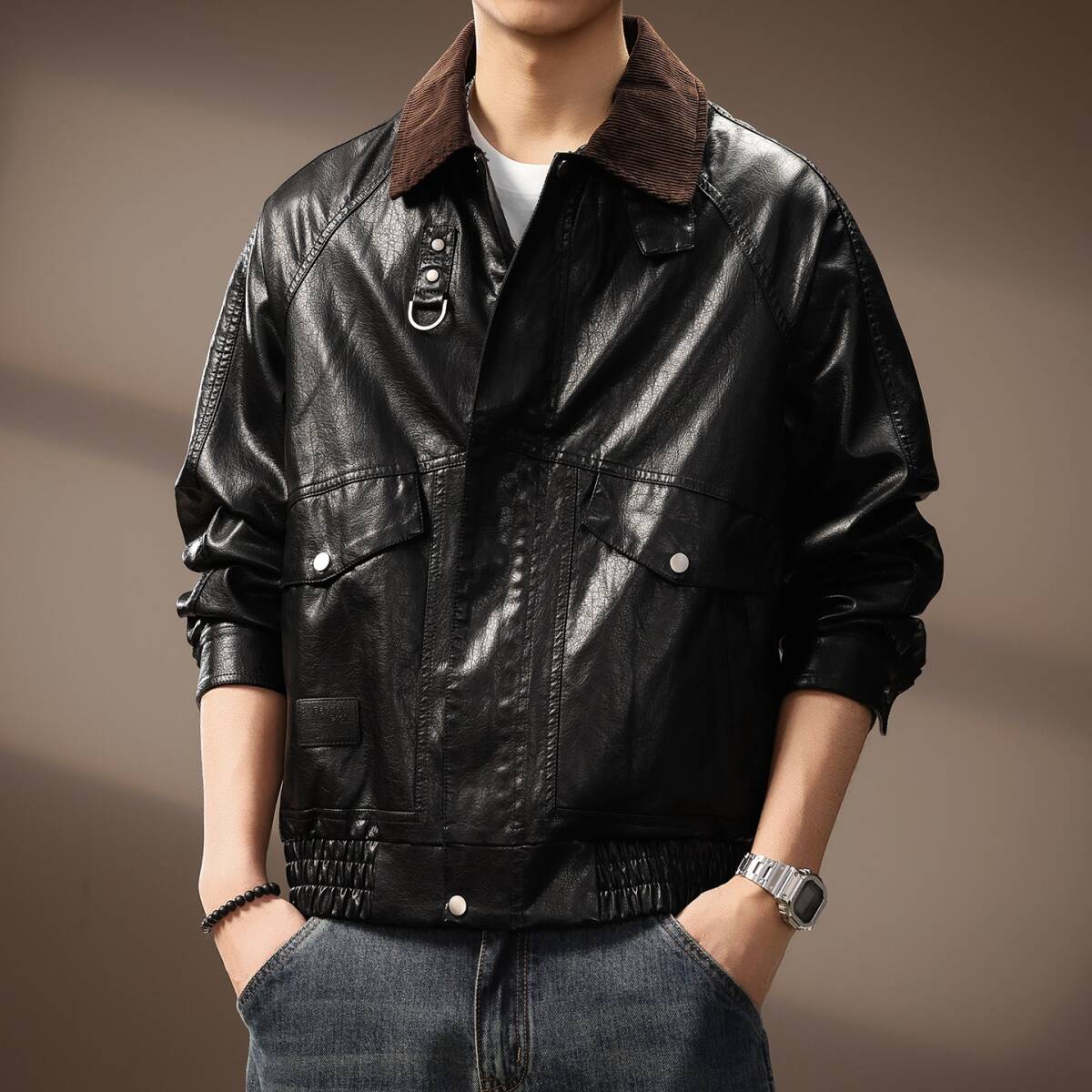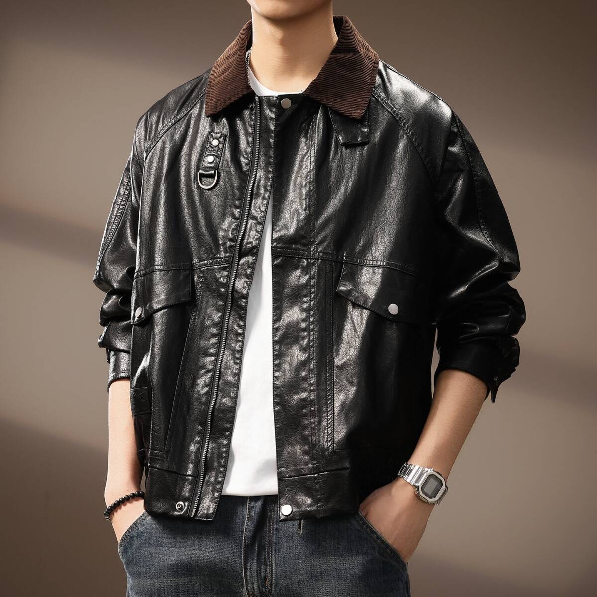 フェイクレザージャケット メンズ*新品 PUレザージャケット アメカジ 高品質 春服秋服 ジャンパー ブルゾン【KDKJ523】黒色 2XL