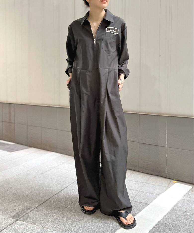 新品商品です。定価46,200円 上品な光沢感と程良いハリのあるタイプライター生地を使用したジャンプスーツ。 上半身は程よくフィットし、ボトムはたっぷりワイドシルエットにしてメリハリを出し、女性らしい着こなしやアレンジを楽しめるようにしています。 本物のヴィンテージネームパッチを一点ずつあしらった胸元、背面にはボディと同色の"CALIFORNIA"の刺繍と、ユニークな表情も魅力的! 袖をウエストで結んでパンツ風に仕立てたり、片袖だけ外してタンクトップを覗かせるなど、自由自在な着こなしが楽しめる一着です。 |