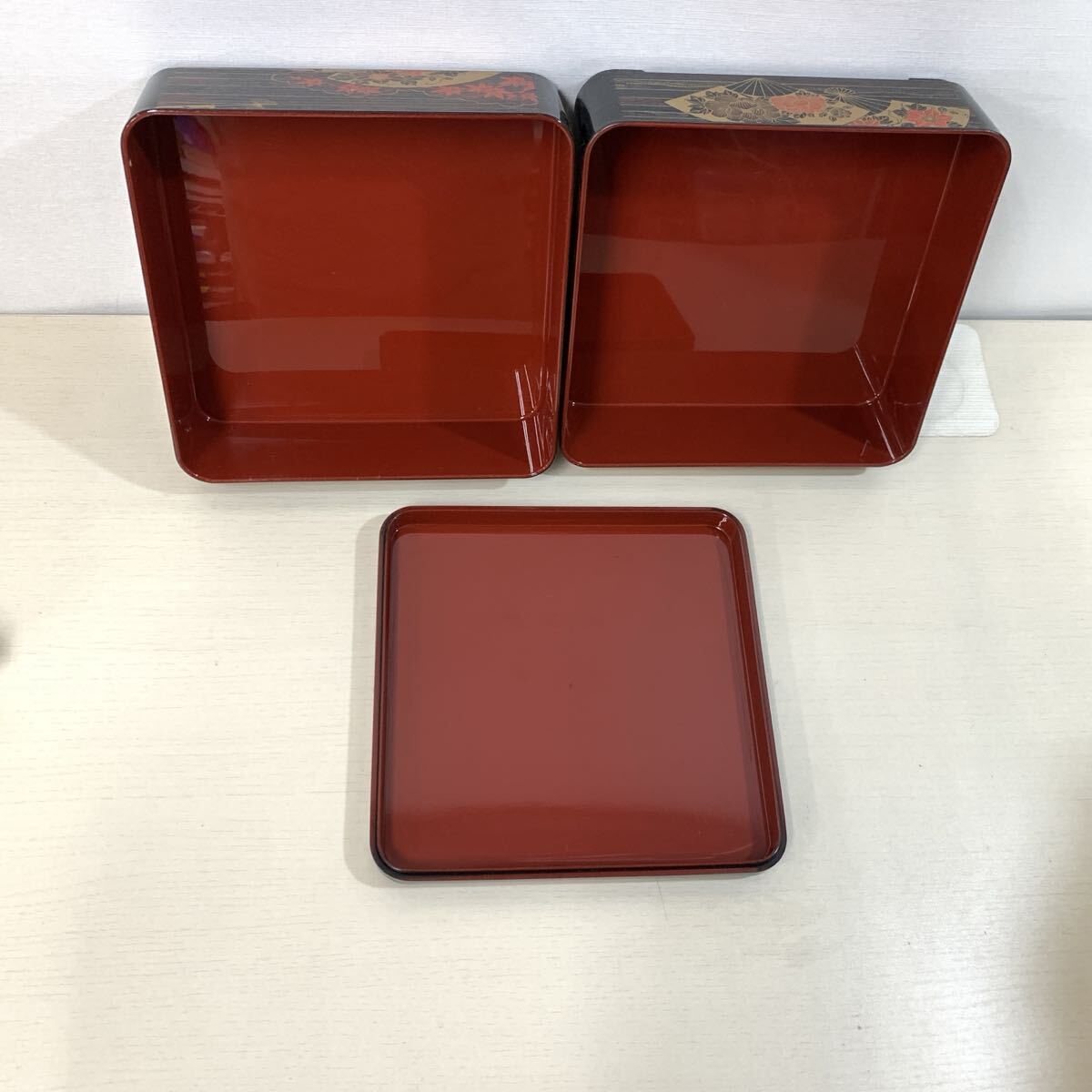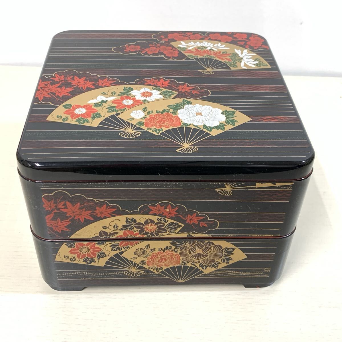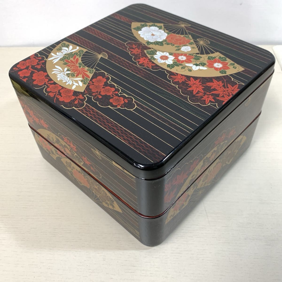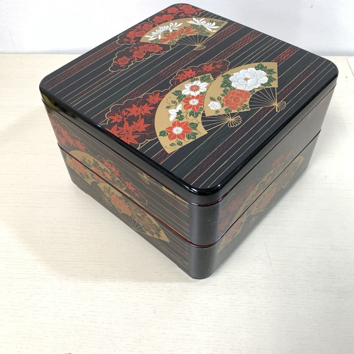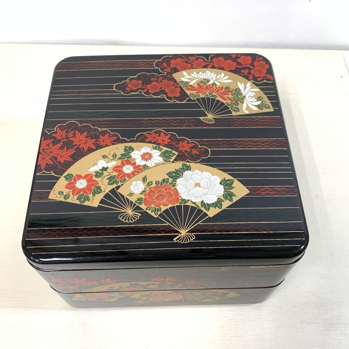 重箱 二段重 扇柄 おせち 食器 重箱 蒔絵 花柄 漆器 漆芸 プラスチック(10217D