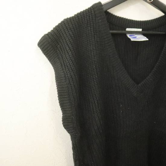 商品名 j154 80sビンテージ ExtraTouch アクリルニットベスト 無地■1980年代製 表記38サイズ ブラック 古着 アメカジ ストリート 90s 激安 古着御