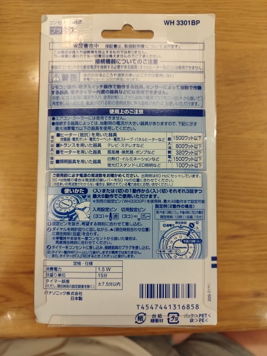 ■□ Panasonic 24時間くりかえしタイマーWH3301BP