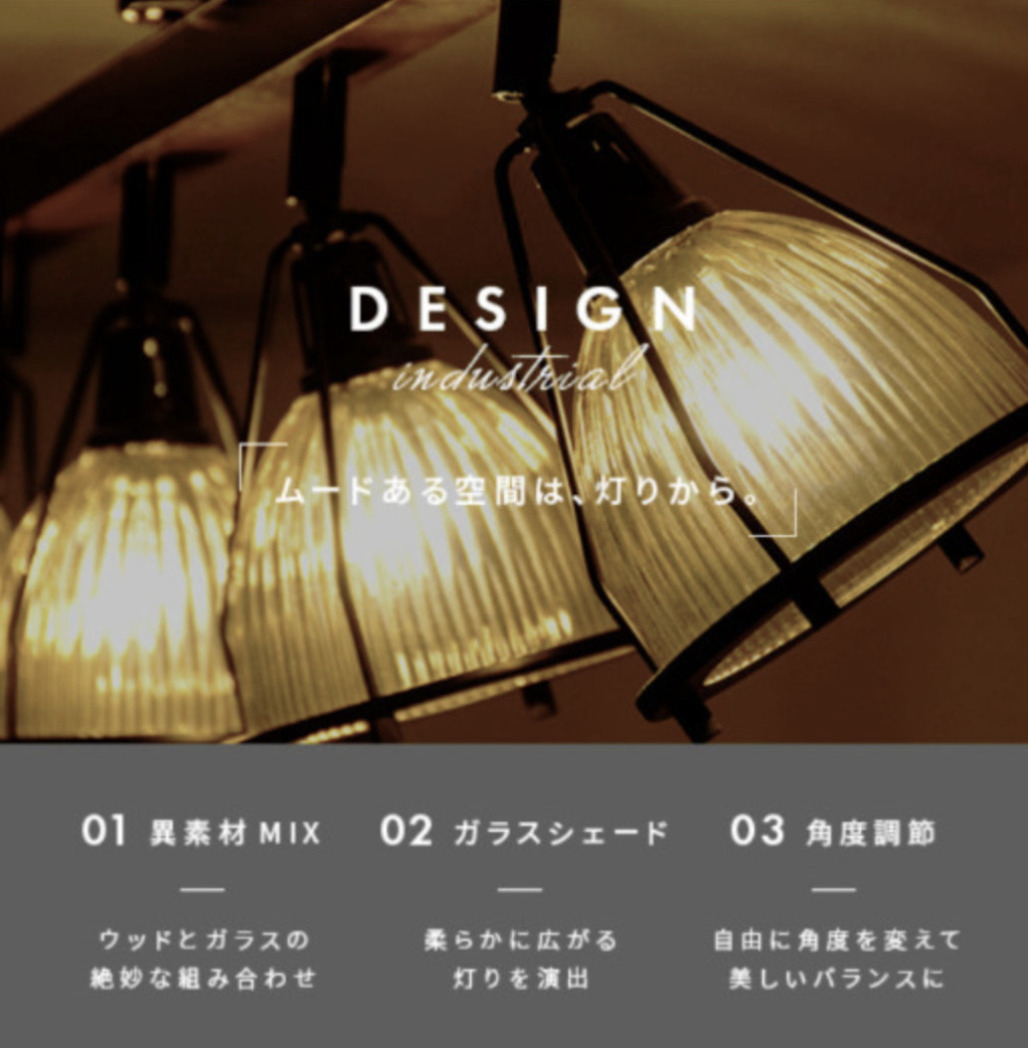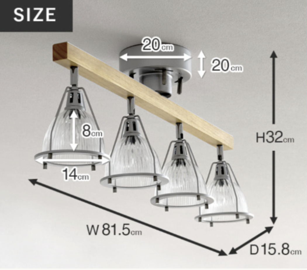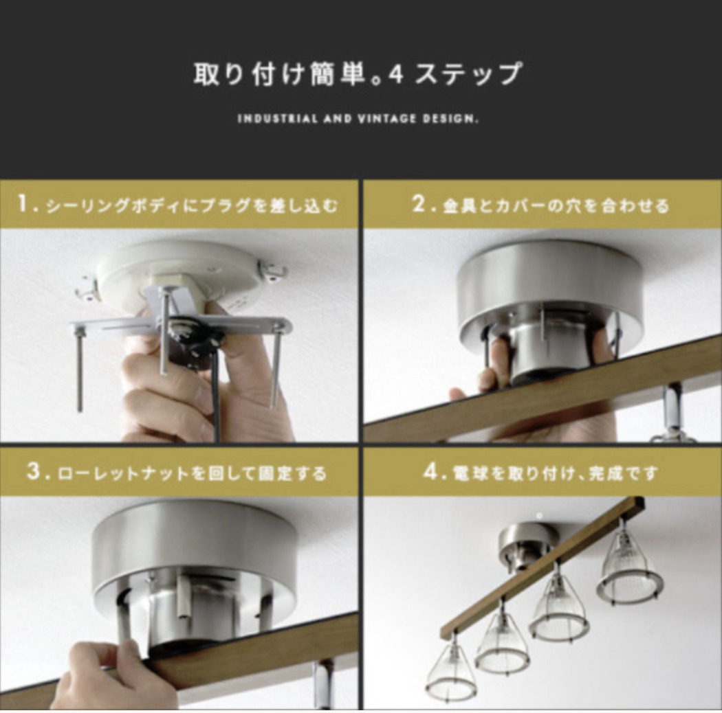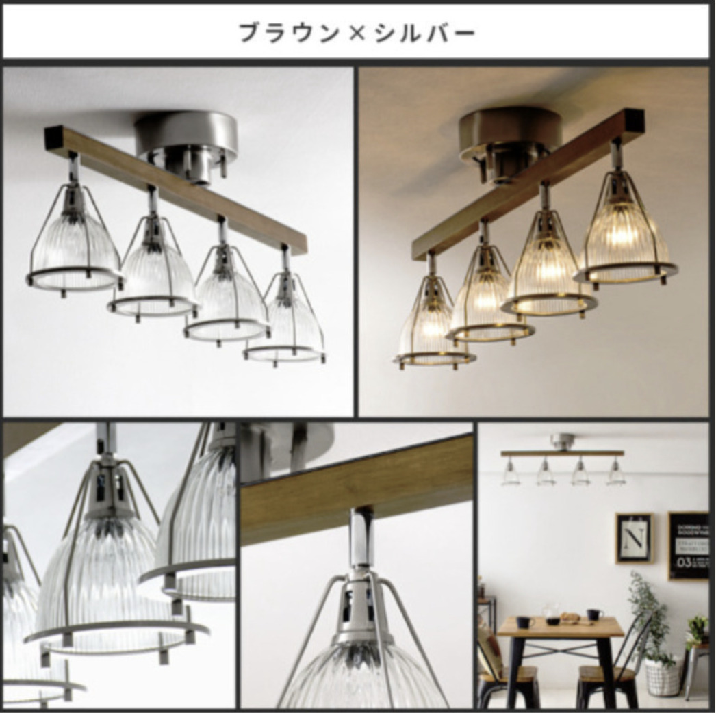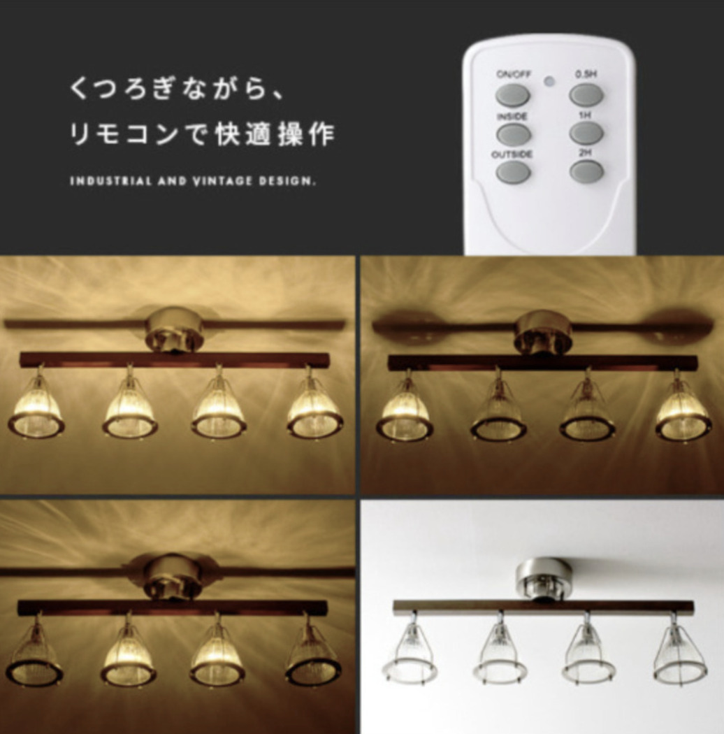 19世紀の工業用照明からインスパイアされたインダストリアルデザインに、温もりある天然木を贅沢に取り入れた4灯シーリングライト