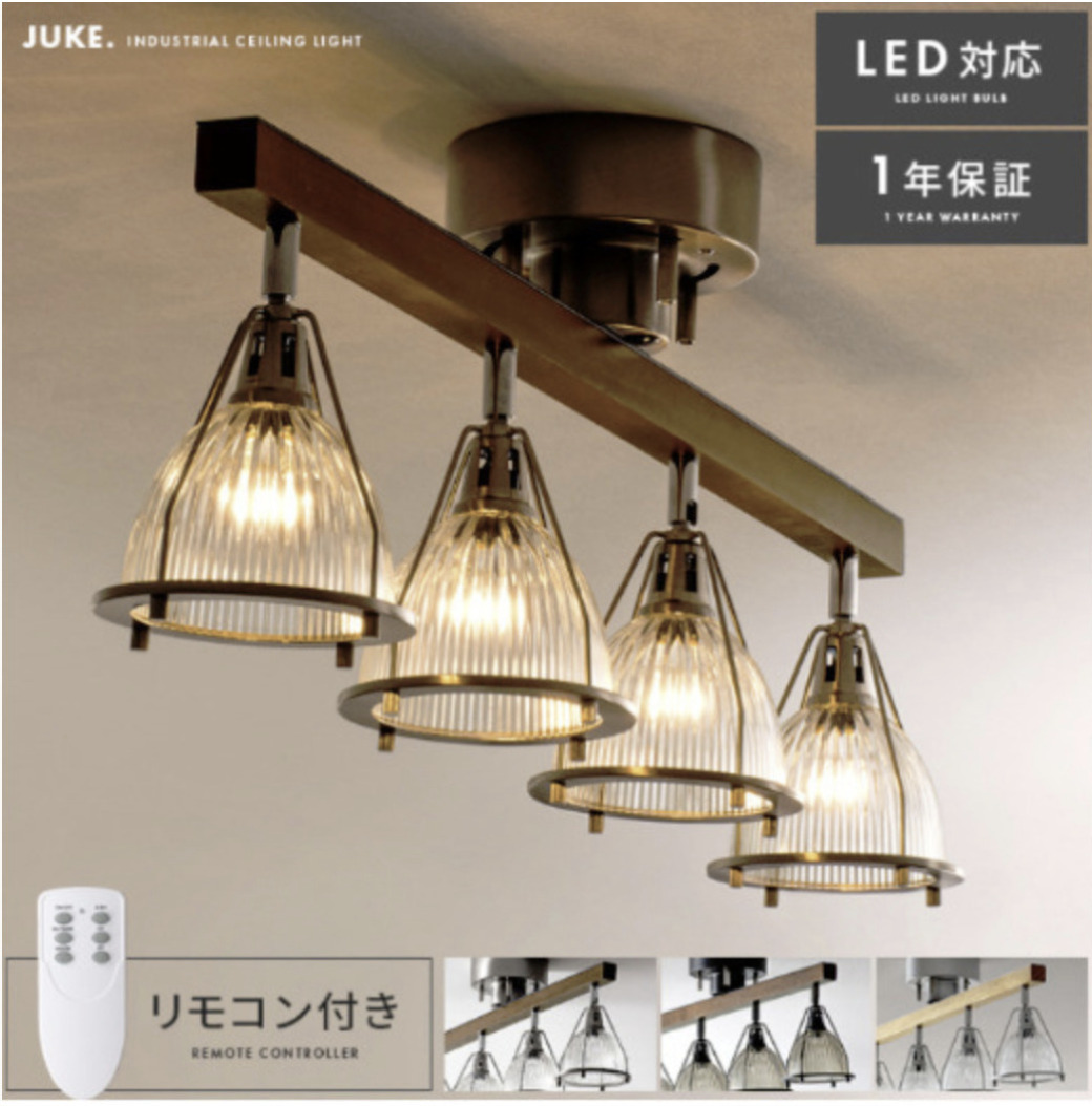 インダストリアルなデザインが目を惹くシーリングライトで、カフェのような雰囲気漂う素敵なお部屋づくりを。