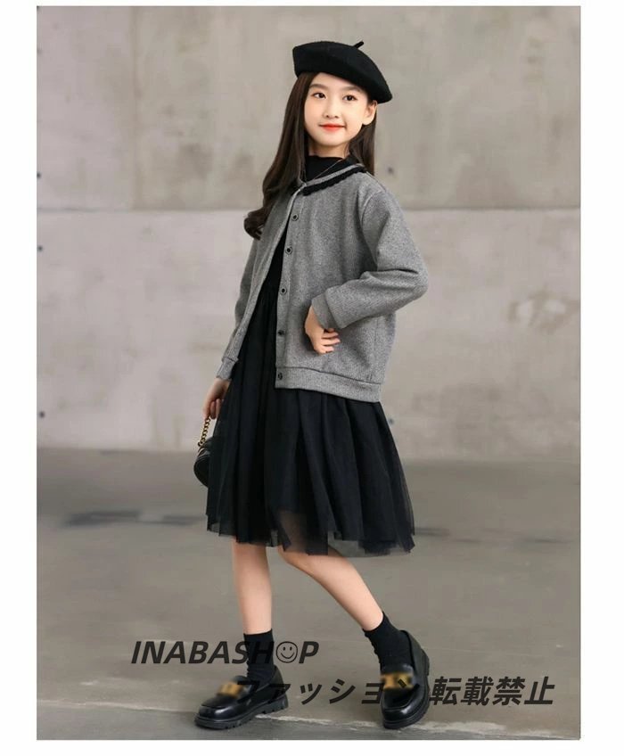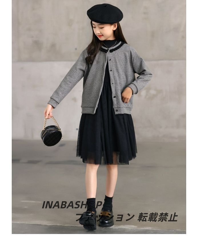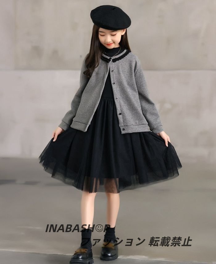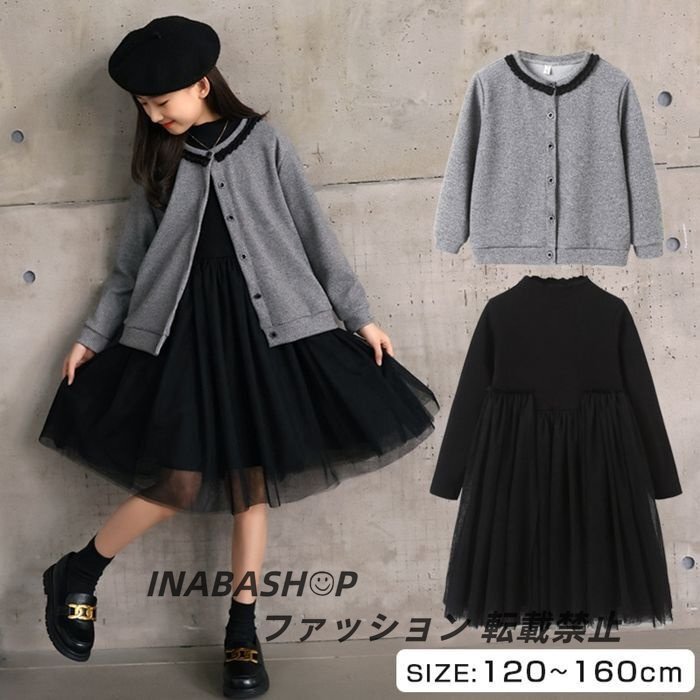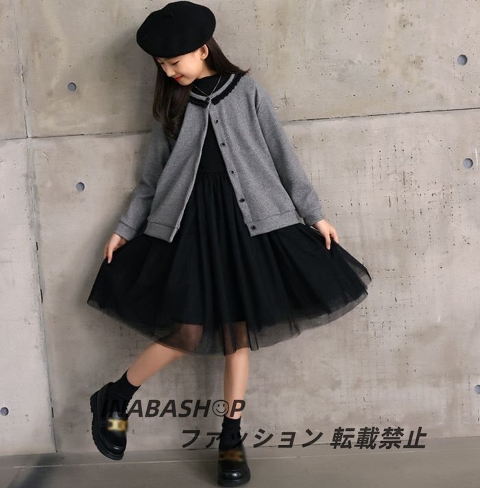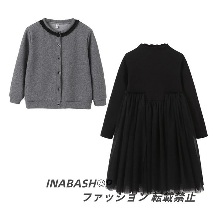 子供服 ワンピース フォーマルドレス チュールスカート カーディガン 女の子 キッズ用 長袖 黒 秋 冬 入学式 入園式 卒業式