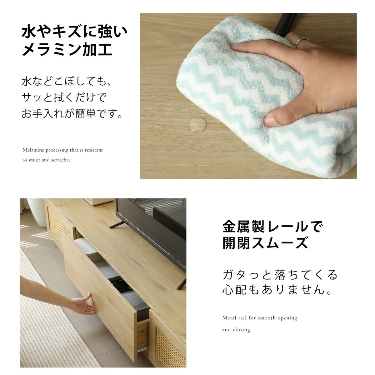 【幅150cm】テレビ台 ローボード 収納 テレビボード テレビラック リビングボード ラタン風 おしゃれ 北欧 引出し収納 TV台 TVボード