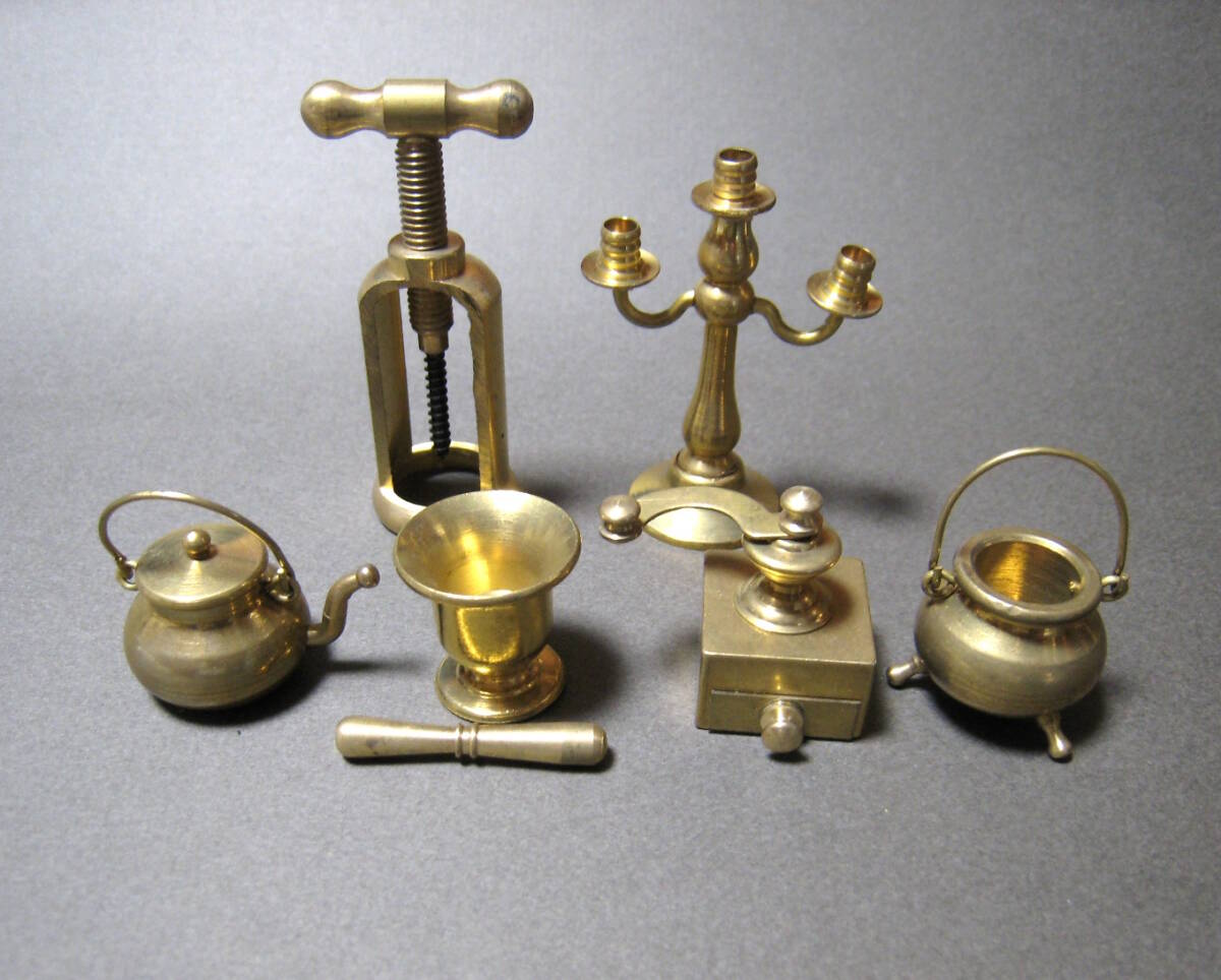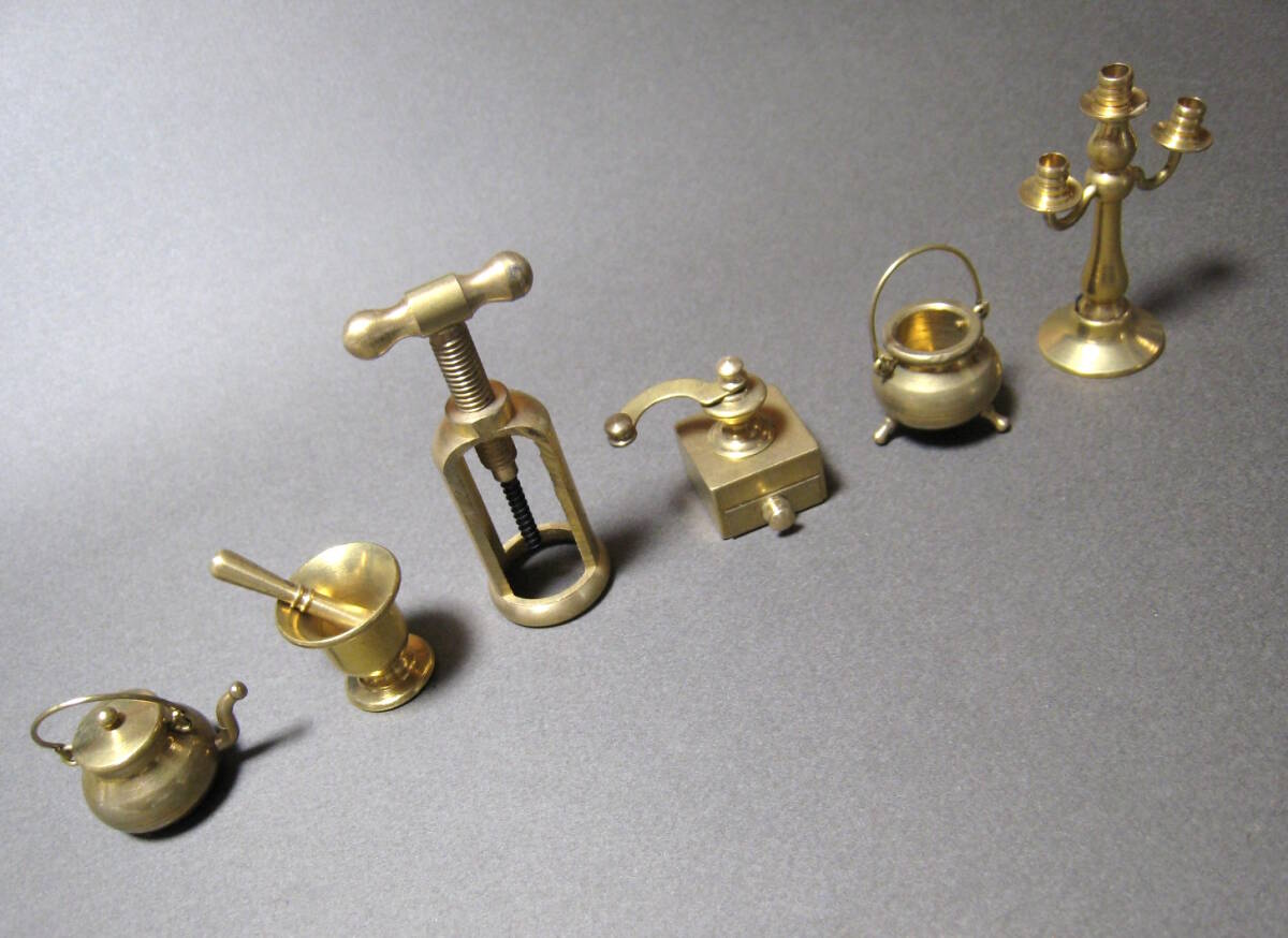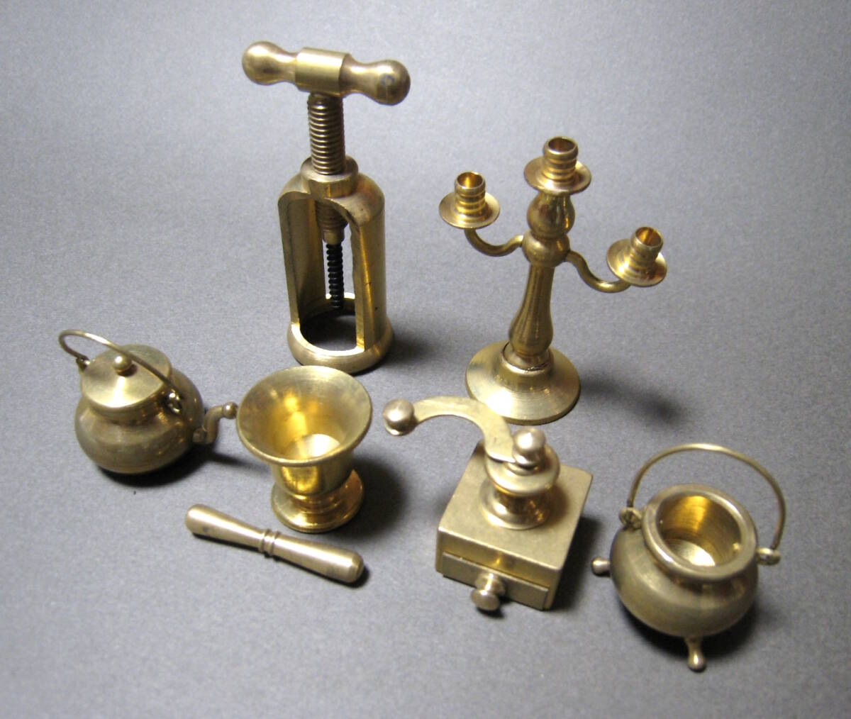 ミニ インテリア イタリア製 Massiv Messing 真鍮製 未使用 ミニチュア アンティーク調 燭台 コーヒーミル 時計 バケツ ケトル