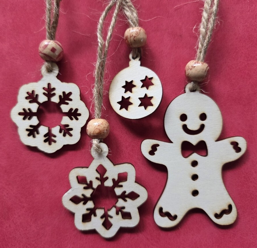 木製 ウッド オーナメント 冬 クリスマス 4枚セット ハンドメイド