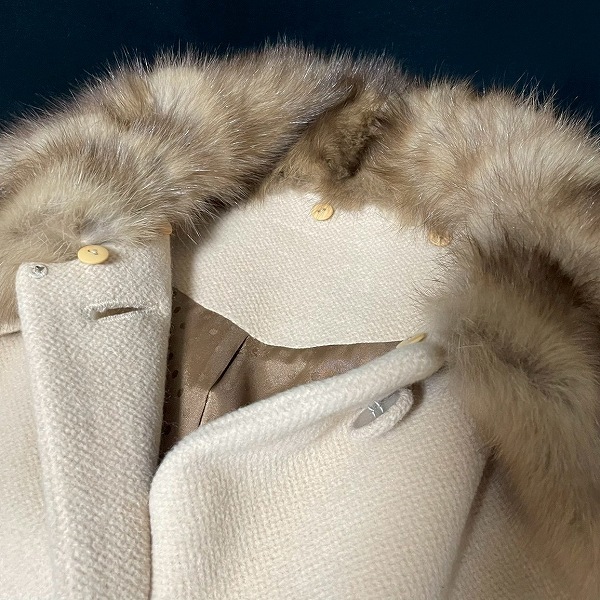 ●コンディション備考:ブランドタグがございません。左内側にネーム刺繍、前身頃の左膝付近に薄い汚れ、襟のファーは前所有者様による別商品の後付けがございます。多少の使用感がありますが、全体的には良好な状態になります。
