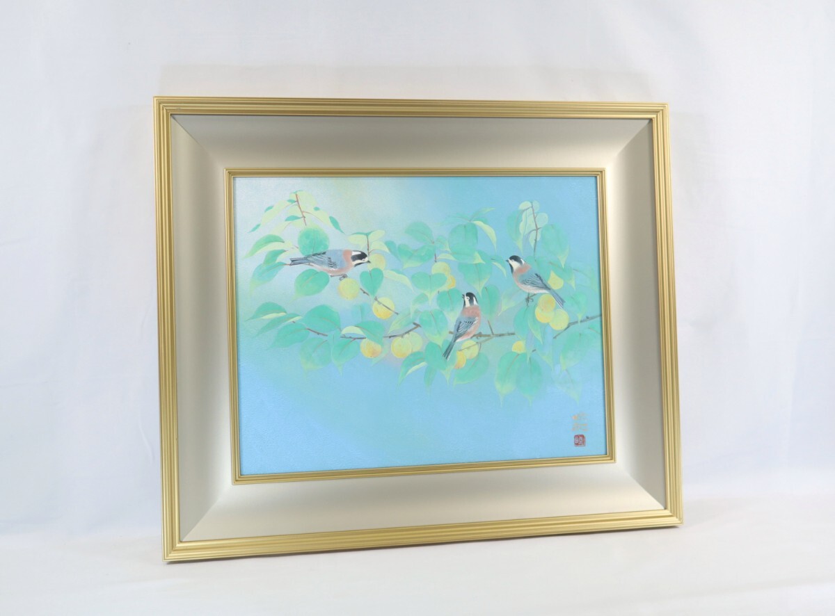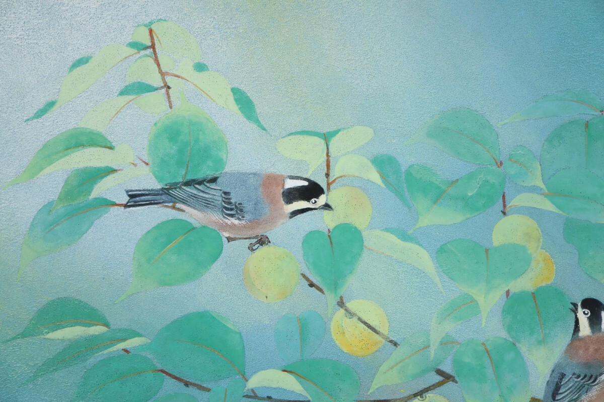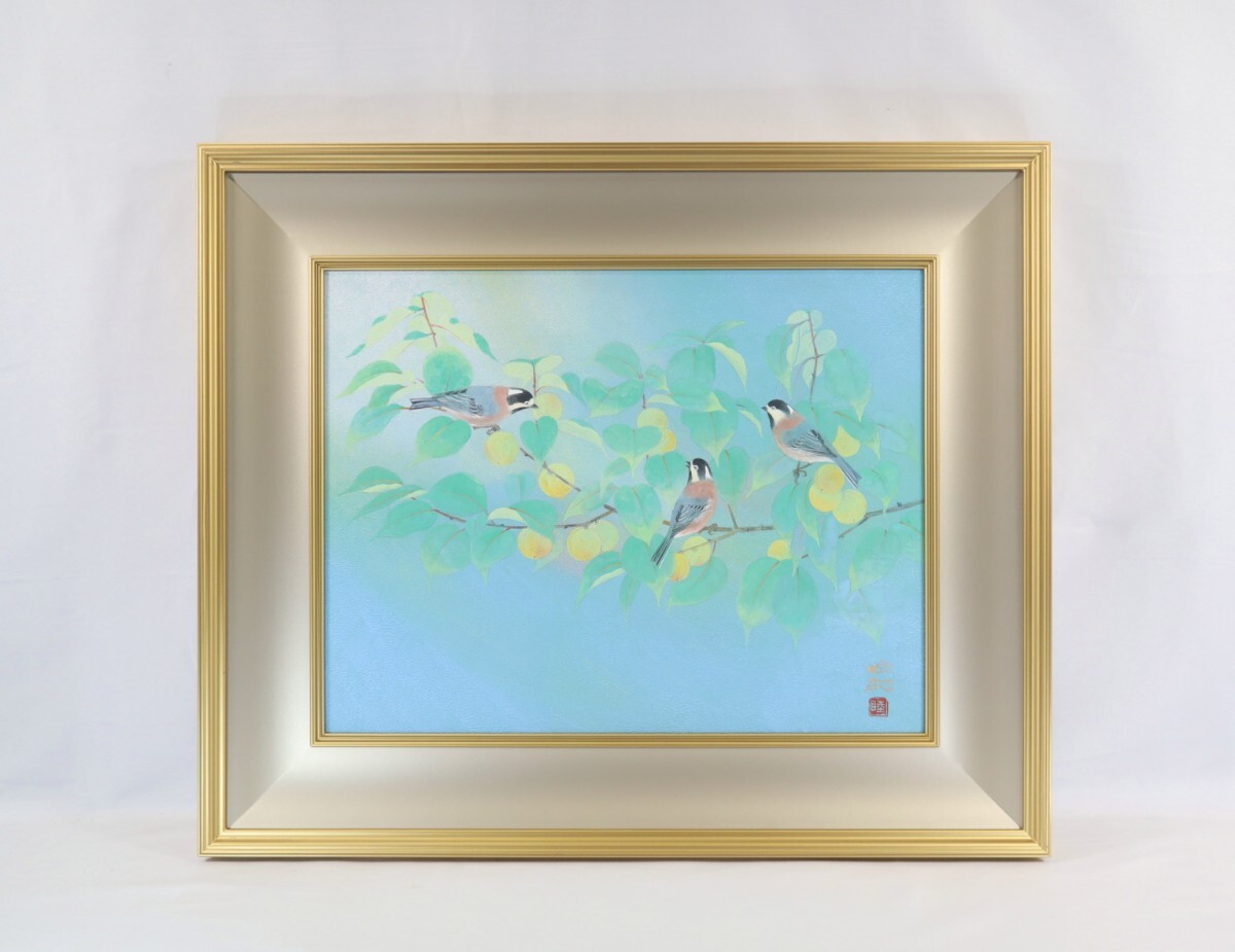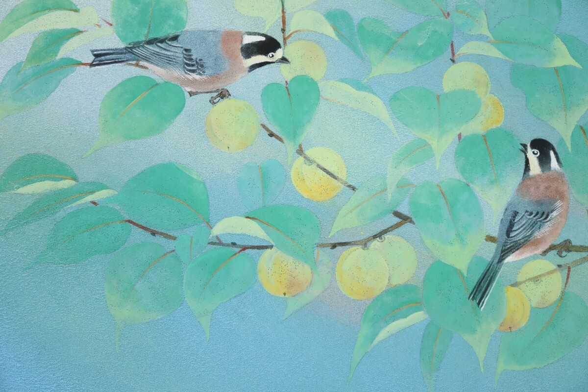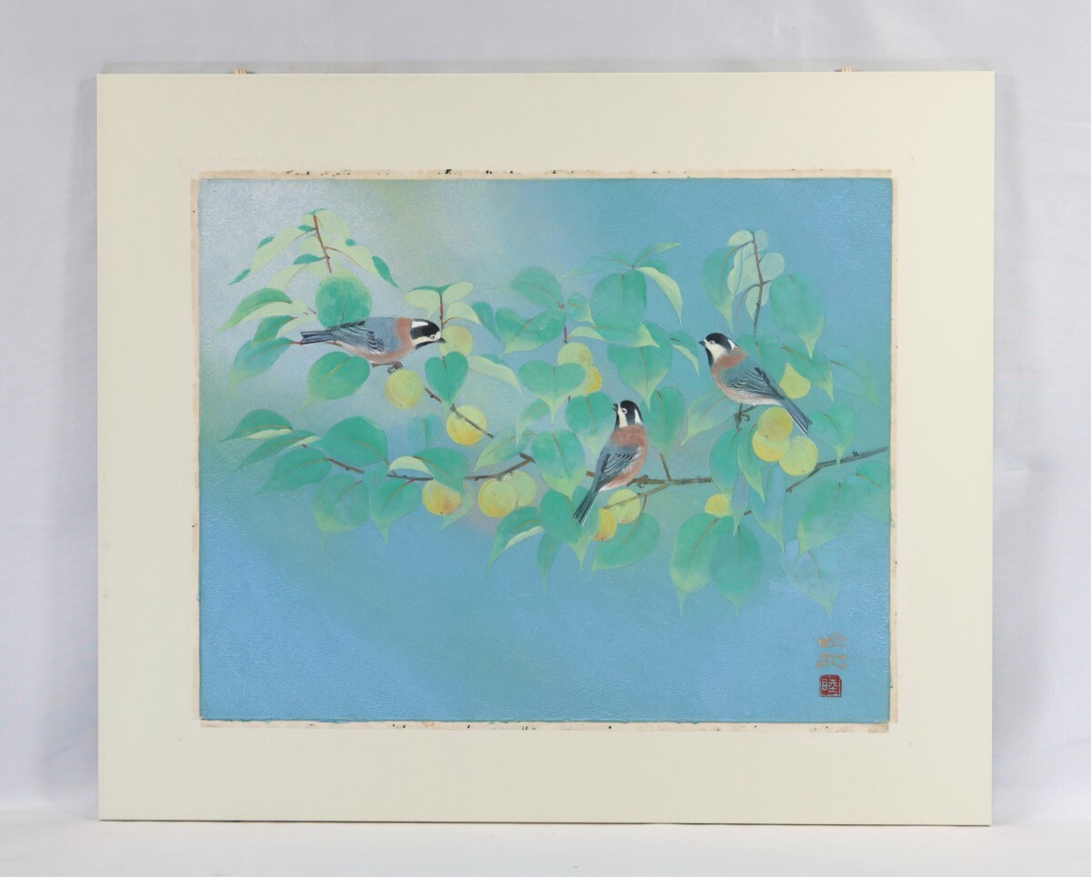 真作 川島睦郎 日本画「青梅」画寸53×41cm 10号 京都府出身 日展審査員 日春展会員 下保昭に師事 新鮮な色彩感覚と繊細な描写で表現 11198