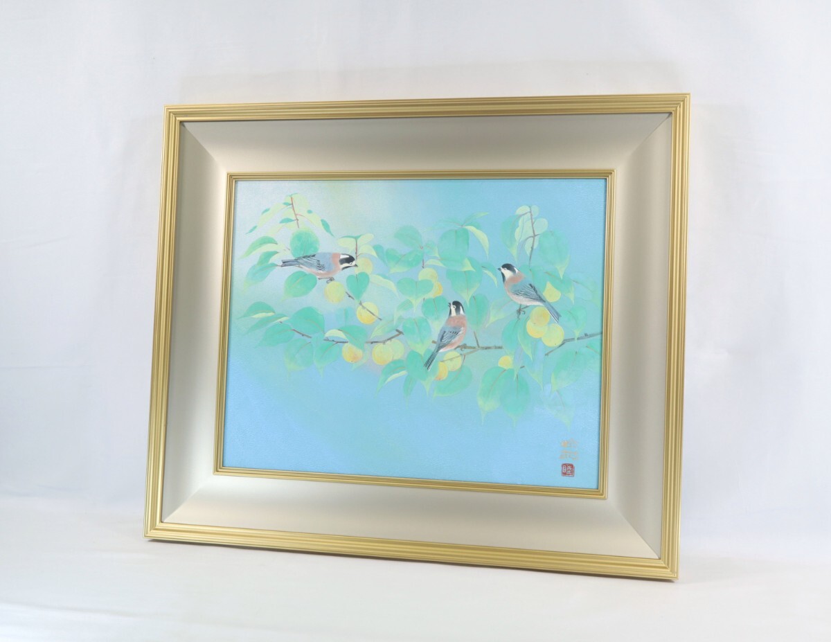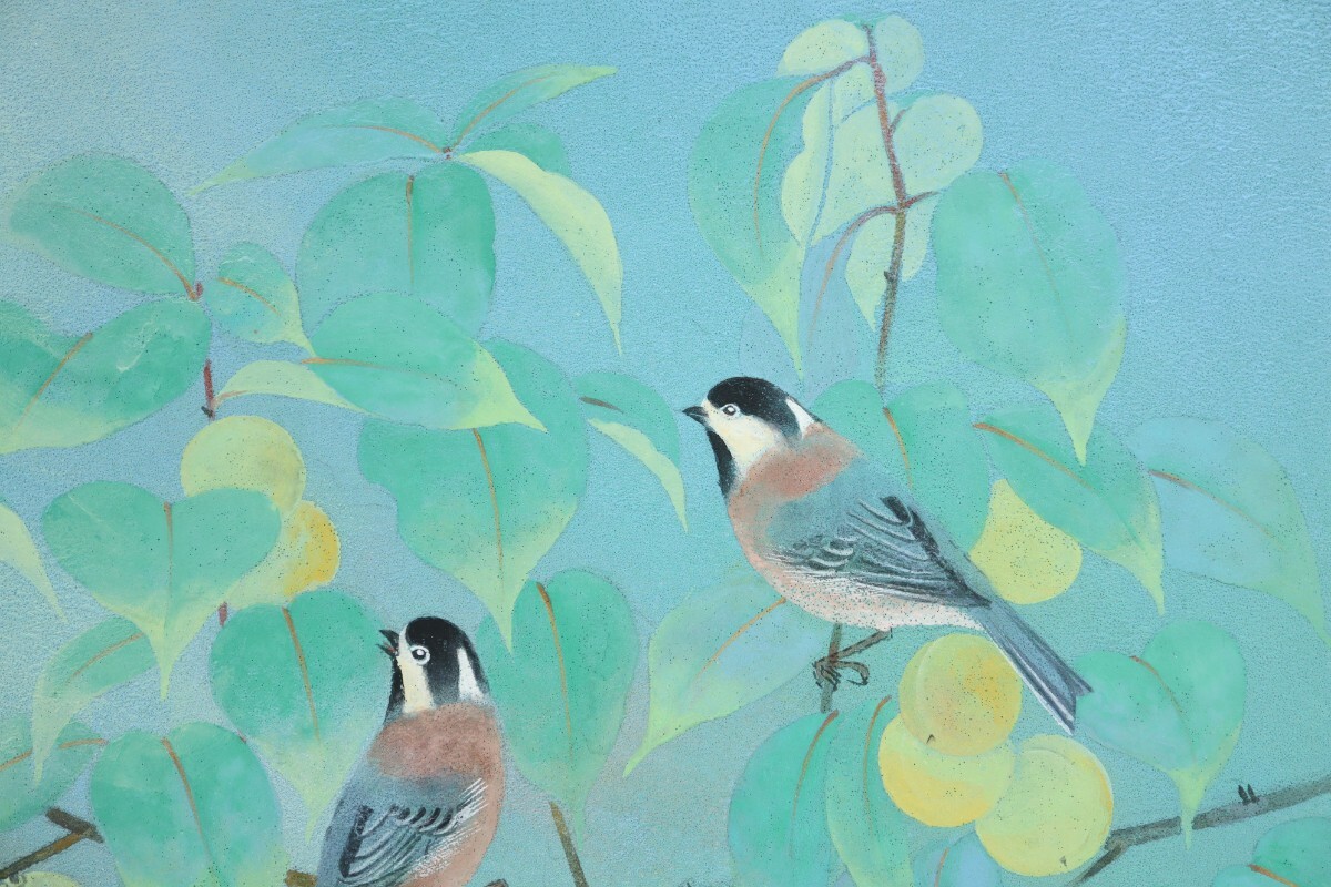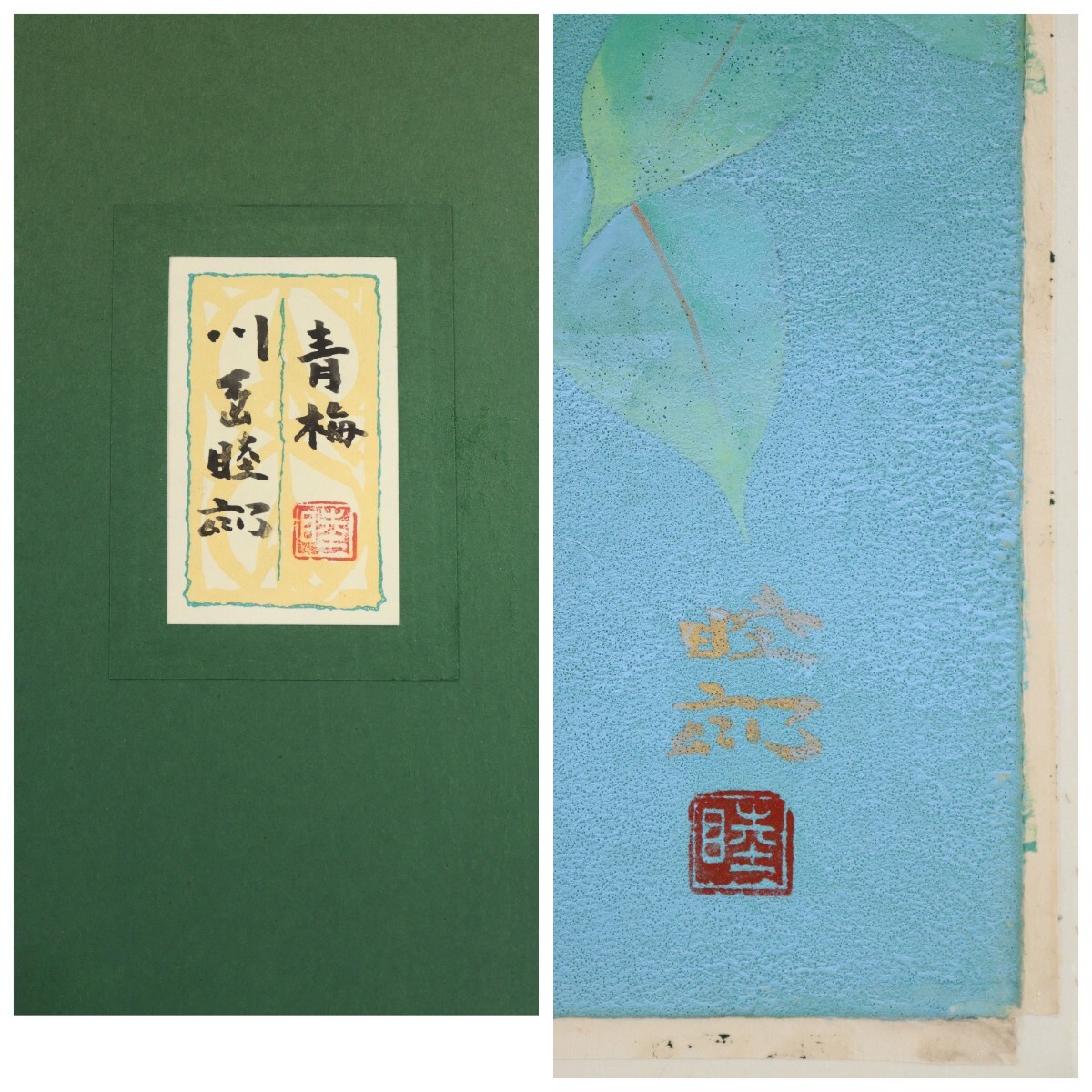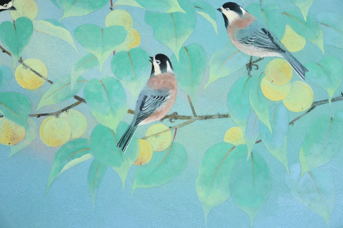 真作 川島睦郎 日本画「青梅」画寸53×41cm 10号 京都府出身 日展審査員 日春展会員 下保昭に師事 新鮮な色彩感覚と繊細な描写で表現 11198