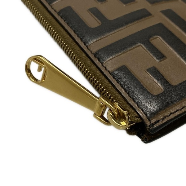 フェンディ FENDI コインケース 8AP161 ズッカ柄 レザー ダークブラウン×黒 キーリング付き/カードケース付き 財布