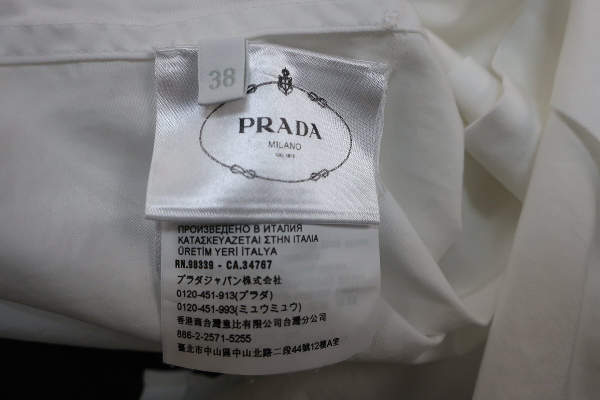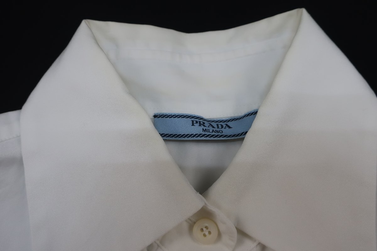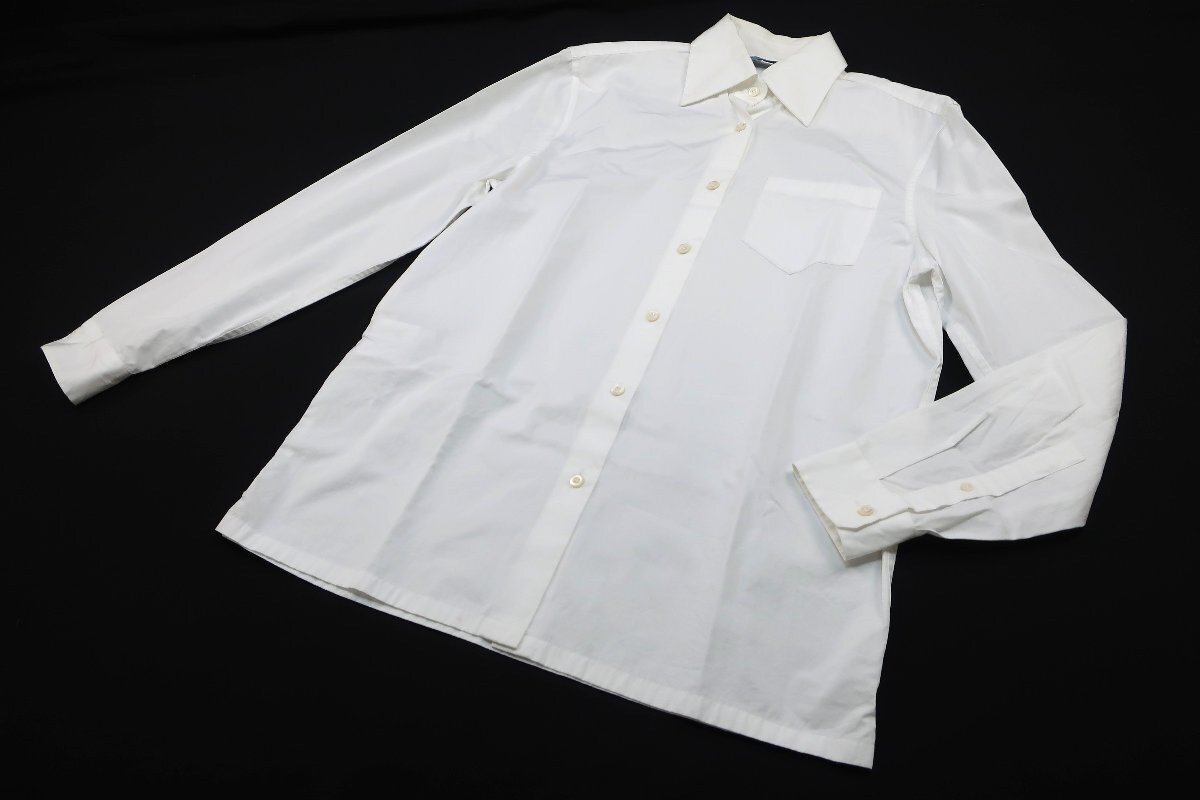 ★【B送900円】2573 PRADA プラダ 長袖コットンシャツ ブラウス ドレスシャツ カットソー 綿100% 白 38
