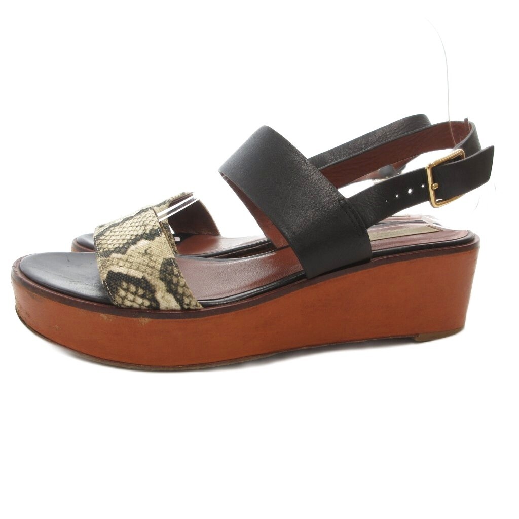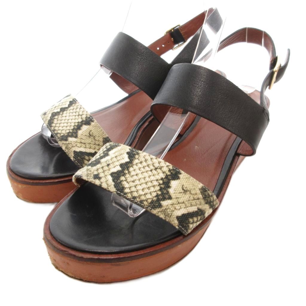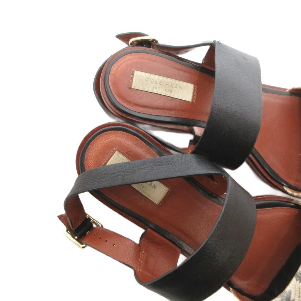 コールハーン COLE HAAN ストラップサンダル コンフォート パイソン柄プリント レザー 6.5 約23.5cm 黒 ブラック /JS ■YHS5