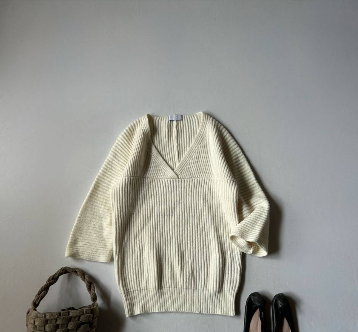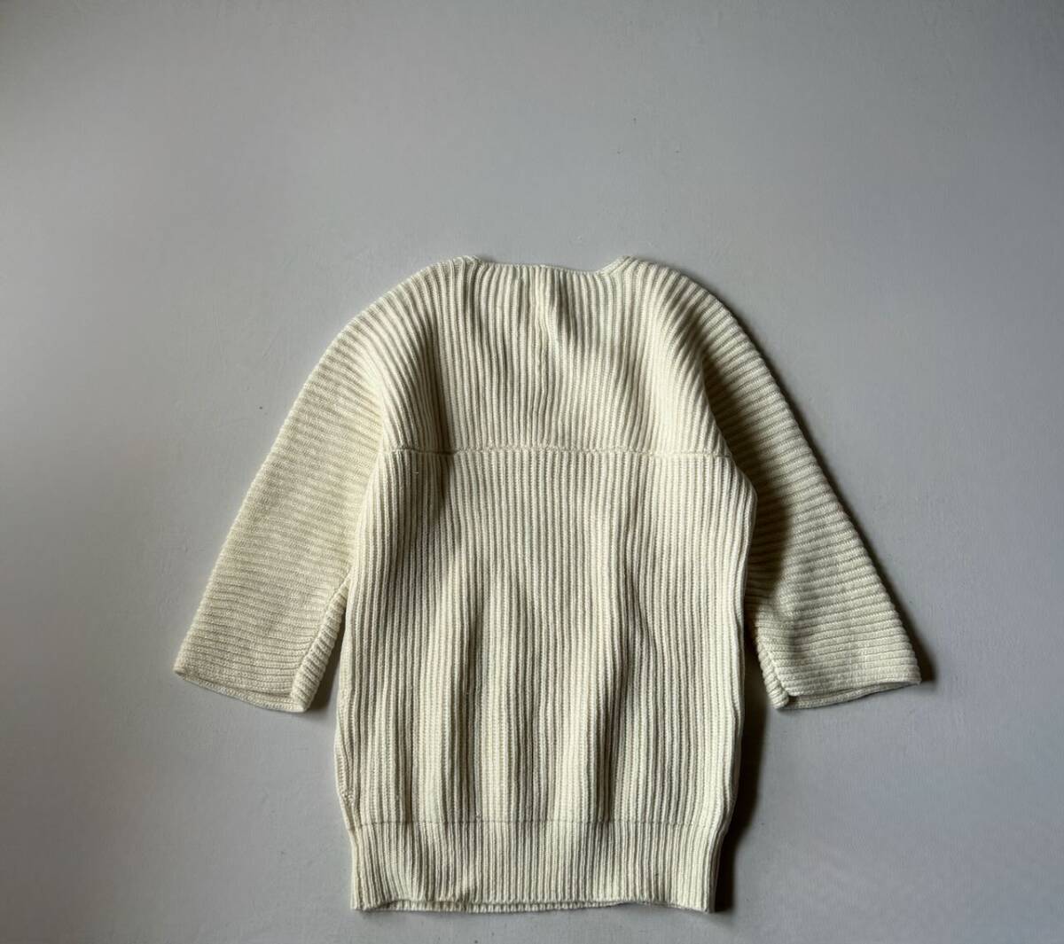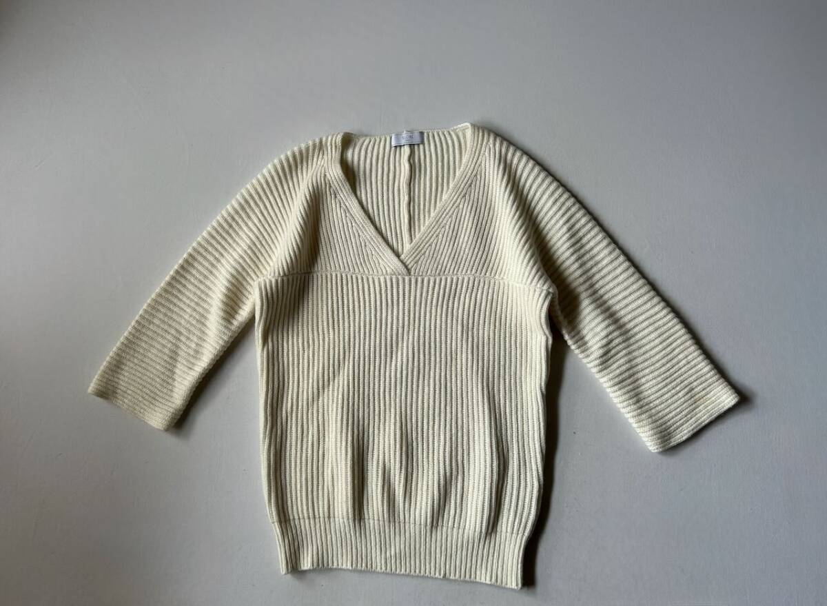 SLOBE IENA スローブイエナの、定番アイテムとして活躍してくれる八分袖のVネックニットです。 色 オフホワイト 袖丈は八分袖くらいになります。 サイズ表示 なし 実寸 着丈65cm 胸囲47cm 脇の下から袖丈25cm くらい (平置きにて計測しております。) 素材 毛50% アクリル40% ナイロン10% *画像でコーディネートした他アイテムは付属致しません。 中古品とお考え下さい。 特に目立つキズはありませんが、袖先に薄いシミがあります。7枚目画像参照下さい。 また、写真画像はモニター環境や撮影状況などに応じて、実際の商品とお色と少し異なる場合があります。よろしくお願いいたします。 ダメージの見落としがある場合はご容赦ください。 他、気になる点はご質問下さい。 なお、落札後のキャンセルはできません。 発送後はノーリターン、ノークレームでお願いします。 オークション終了後、2日以内にご連絡が取れる方のみご入札下さい。 万が一連絡が遅くなってしまう場合は、オークション終了前に、必ず質問欄より お問い合わせ下さい。 | ||||||||