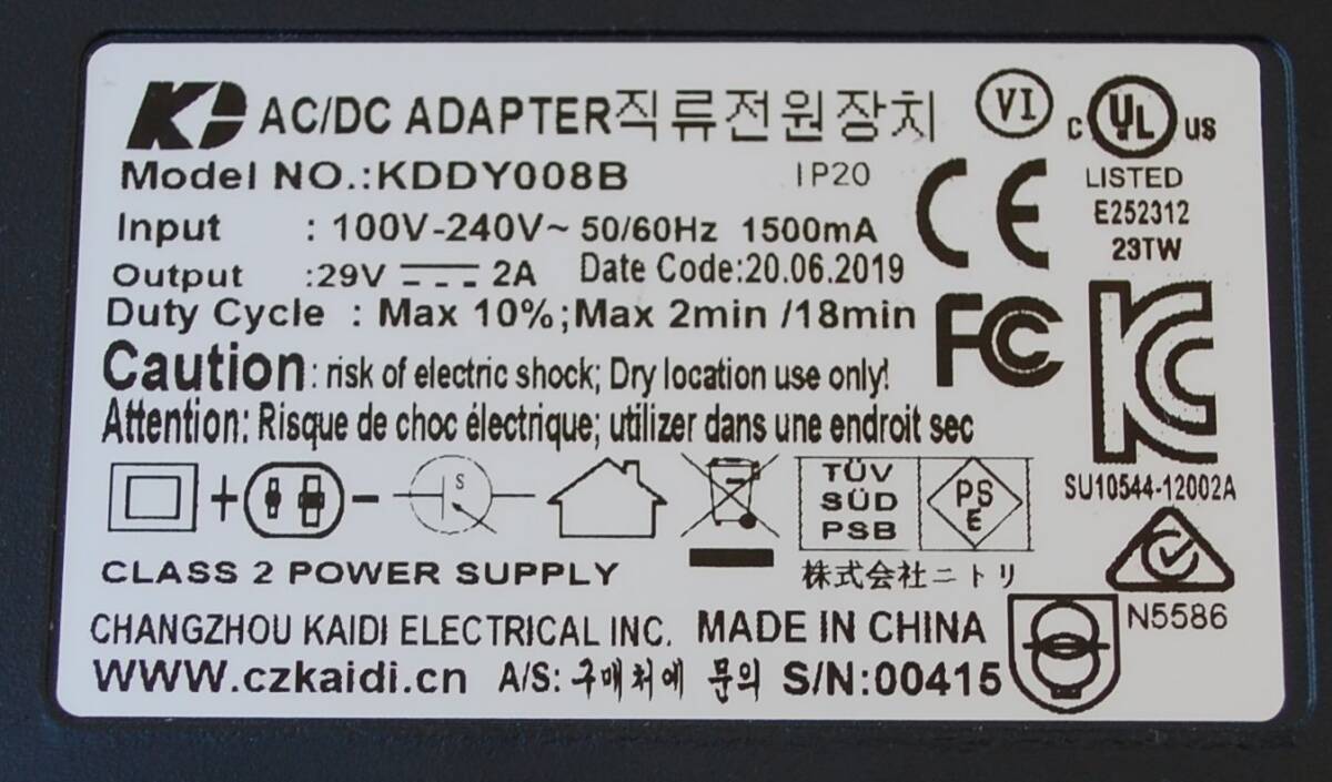 【即決/希少】ニトリ電動ソファ・リフトチェア用ACアダプター KDDY008B 29V/2A [58W] 特殊電圧&プラグ 本体のみ 送料440円~