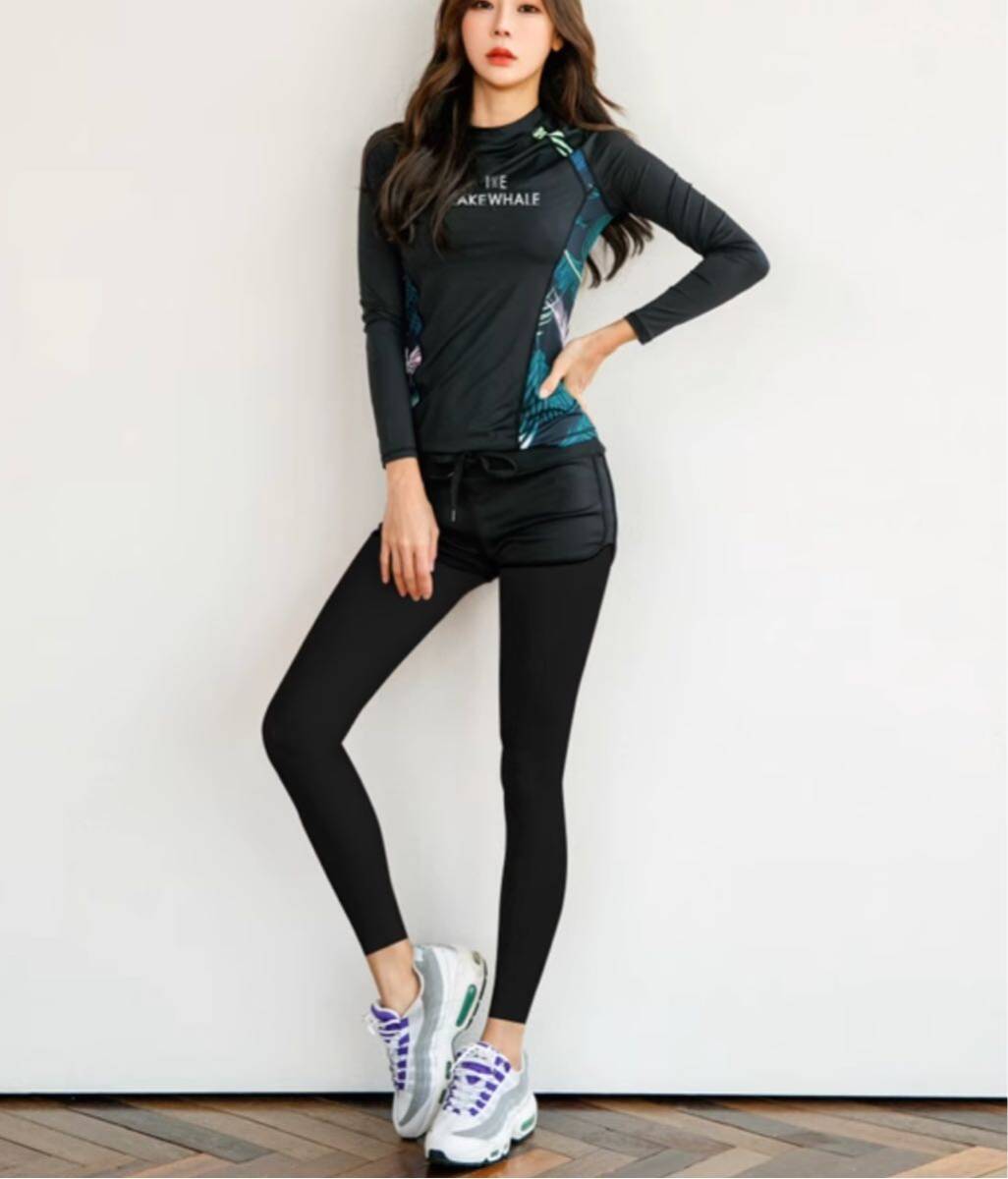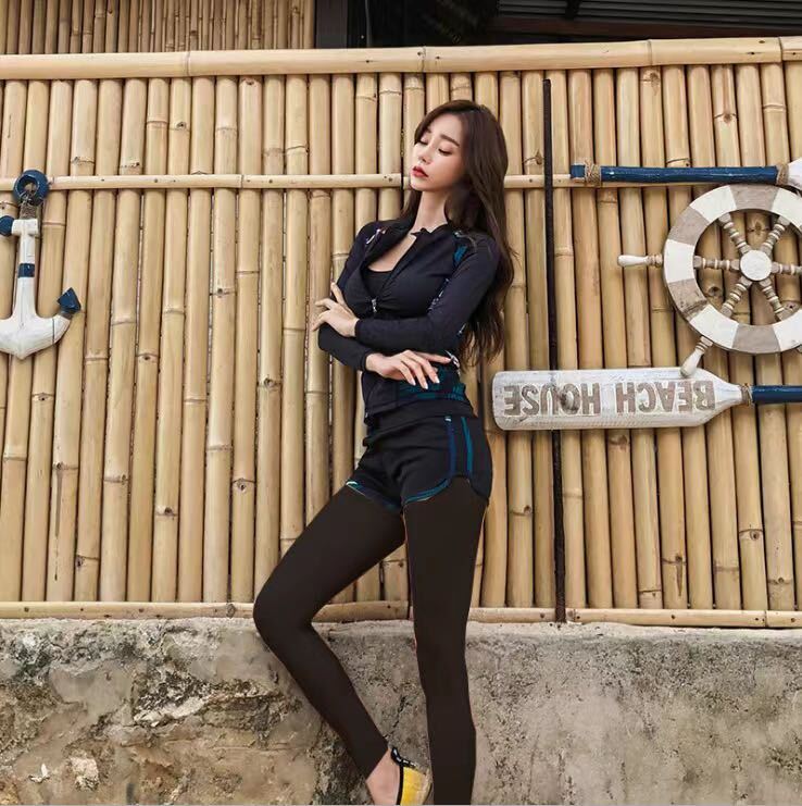 ★送料無料★水着 レディース, 5点セット*ビキニ下+ラッシュガード+ショートパンツ+レギンス