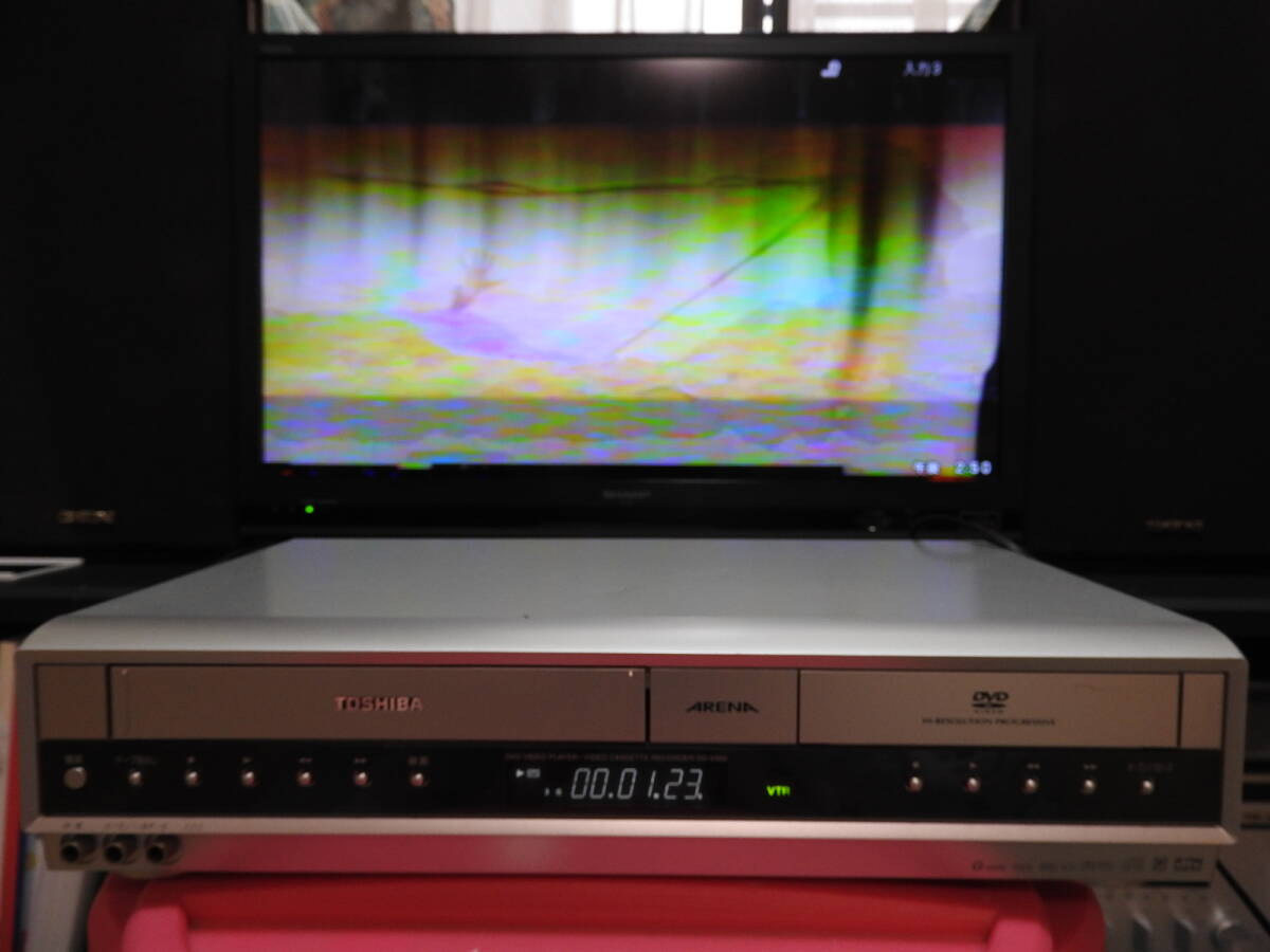 ・VHSビデオは再生しますが、ノイズだらけの画像が表示されます。写真2枚目が再生映像です。