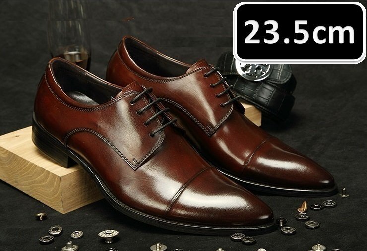 メンズ ビジネス レザー シューズ 本革 ブラウン サイズ 23.5cm 革靴 靴 カジュアル 屈曲性 通勤 軽量 新品 【apa-163】