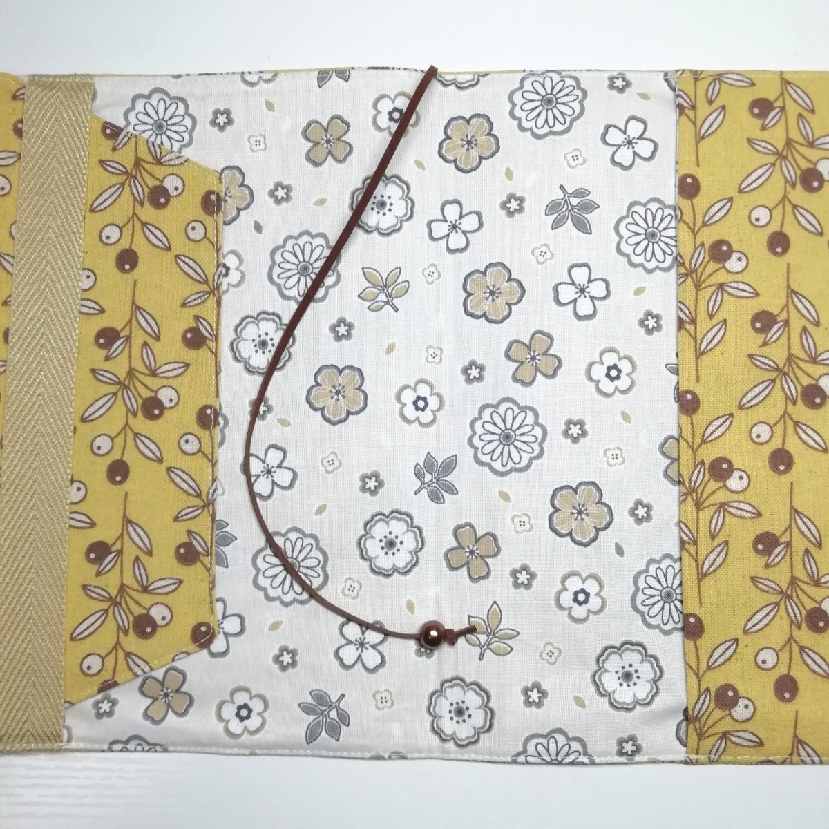 こちらはハンドメイドのブックカバーです。サイズは四六判(約13×19)用で、広げた状態で、縦(内側の実際に本が入る部分)約20、横約36です。