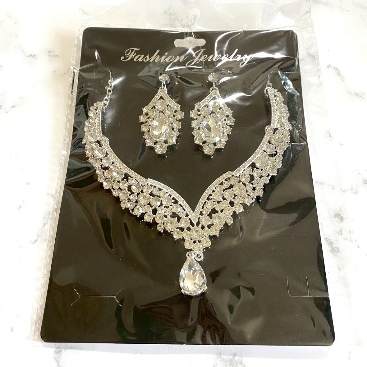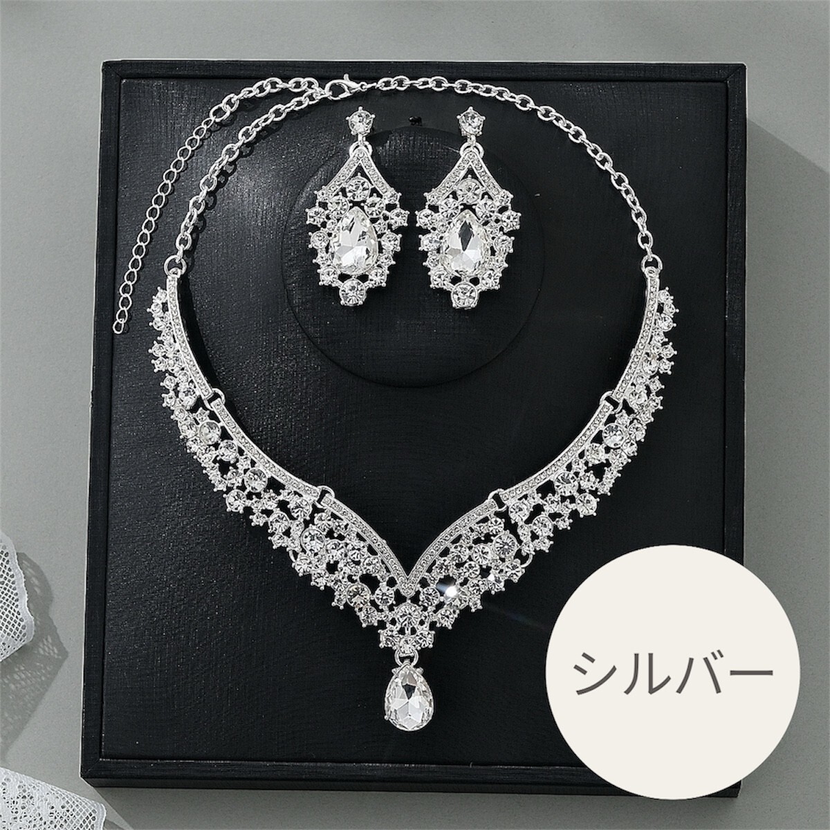 ビジュー ネックレス ピアス セット 結婚式 パーティー ダンス 舞台 披露宴 シルバー