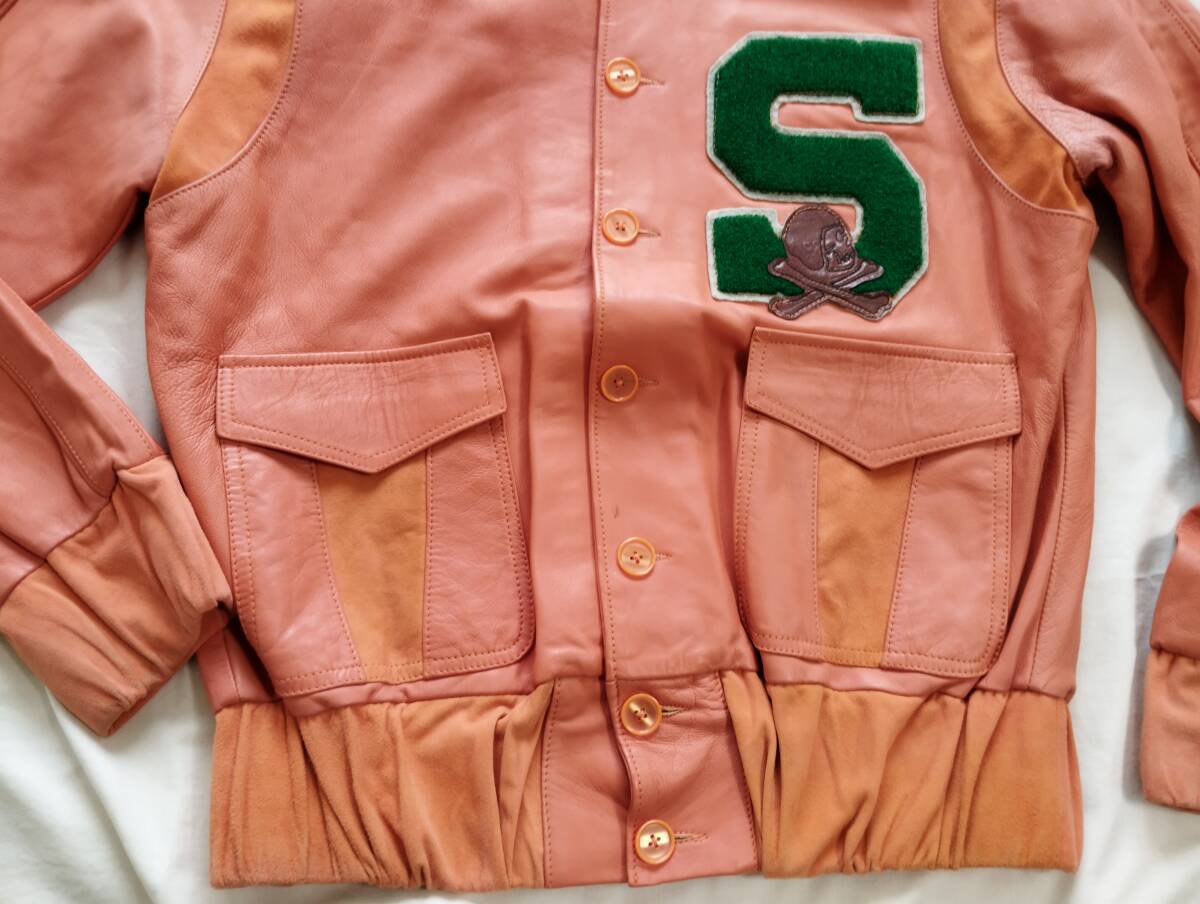 オールレザースタジャンでスカルのワッペンが付いた極上のスタジャンです。