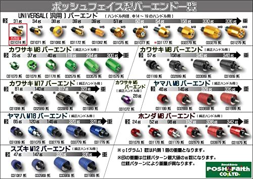 「ポッシュフェイス(POSH FAITH) バイク用品 ハンドルバーエンド NASAタイプバーエンド(外径22mm) ユニ」▼4945716156572▼(商品説明)「ポッシュフェイス(POSH FAITH) バイク用品 ハンドルバーエンド NASAタイプバーエンド(外径22mm) ユニバーサル ハンドル内径1」▼4945720000000▼(商品説明)ゴールド/-/031074-04-10・Color:ゴールド・パイプハンドル内径:14-19mm に対応・純正ハンドルなどに使用できないものがございます。ハンドル内径の確認が必要です。・アルミ削り出しアルマイト/メッキ仕上げ・1個あたり約31g/左右セット・適合車種 GSX1400(2002-2005) | GSX-S1000S カタナ(2019-2020) | GSX-S1000(2015-2017) | GSX-S1000F(2015-2017) | SV650(2016) | V-STROAM(2017) | バーグマン400(2018) | GSR400(2006-2010) | グラディウス400(2009-2010) | V-STROAM250(2017) | GSR250(-2017) | GSX250R(2017)大好評。ポッシュフェイス社 バーエンドにNASAイン