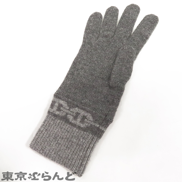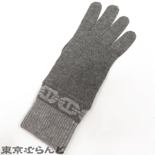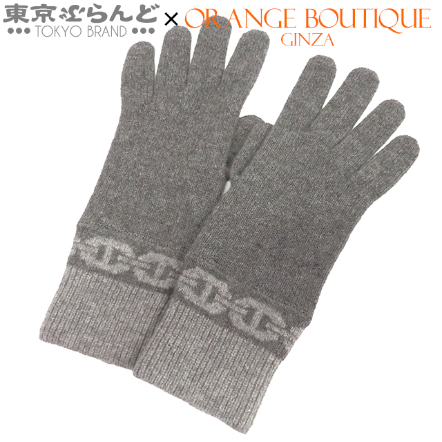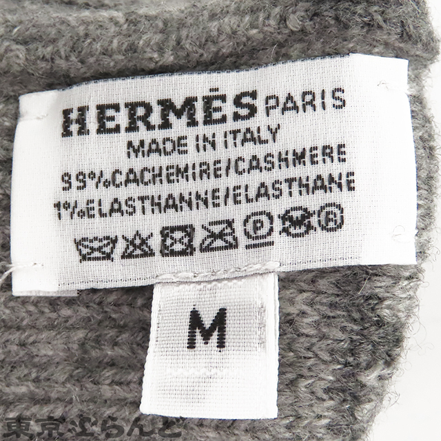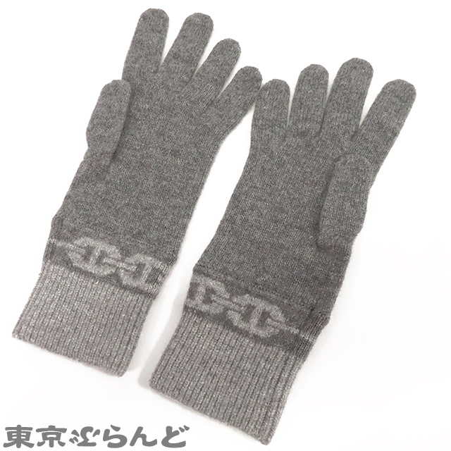 101824809 エルメス HERMES ヘヴン グレー カシミヤ エラスタン シェーヌダンクル ニット グローブ M 手袋 レディース