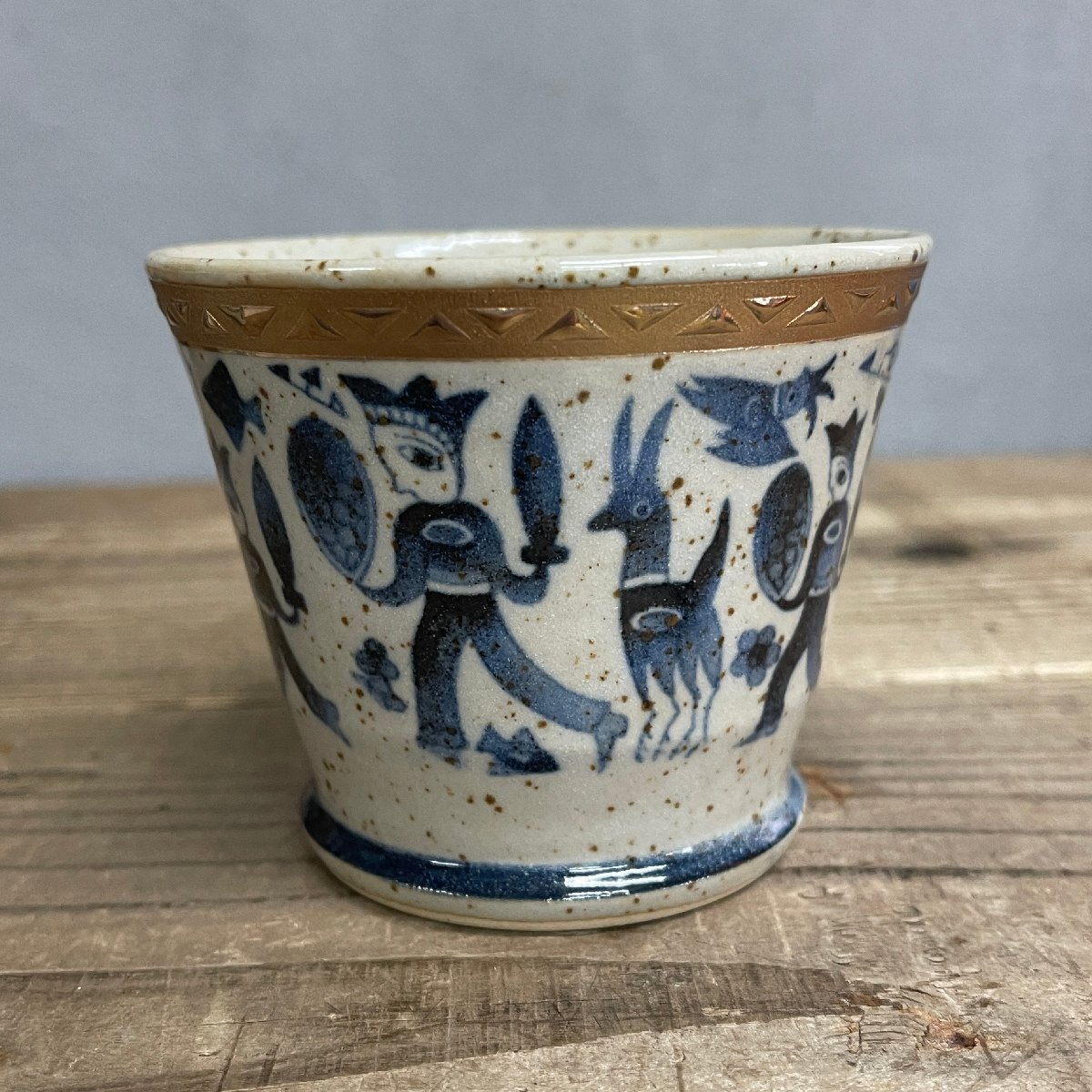未使用★保管品エクレクティックカイカイ 古代風 ハイヤームの詩 美濃焼 民芸 コップ 湯呑 コースター付き 5客