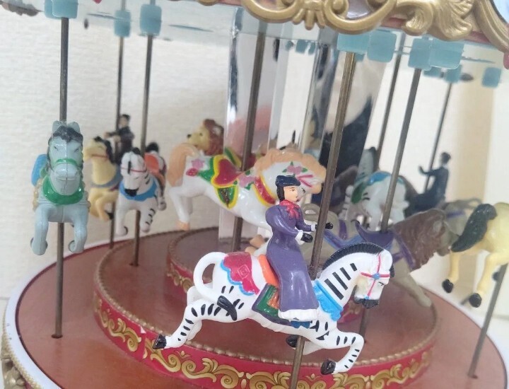 木馬が上下して、本当のメリーゴーランド同様で煌びやかで素敵なオルゴールです。