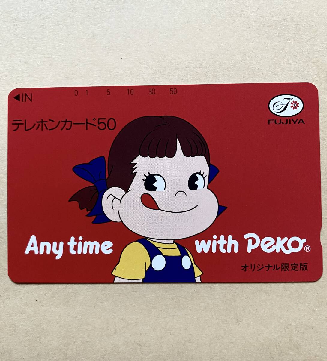 【未使用】 テレカ 50度 ペコちゃん Any time with Peko オリジナル限定版 不二家