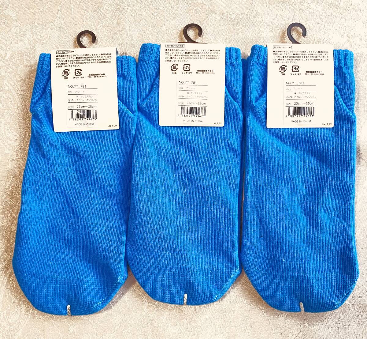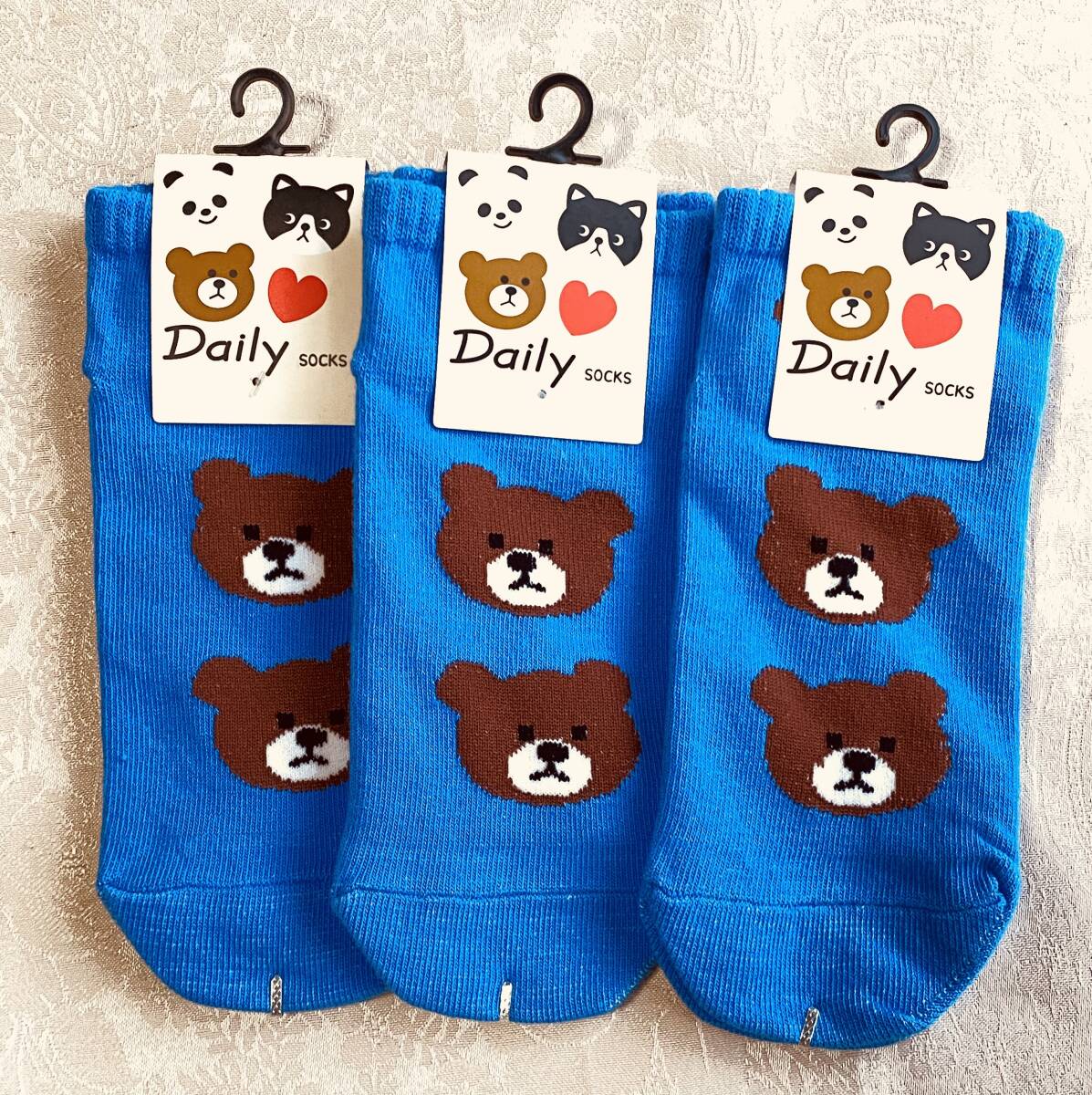 【新品】【送料込み】【23~25】クマ柄ショートソックス3足セット ブルー
