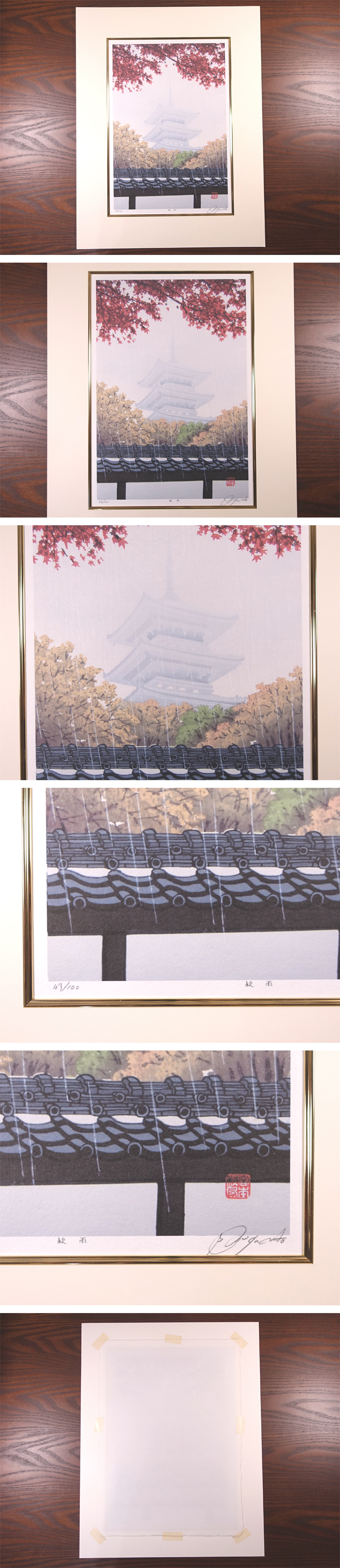 木版画界の名匠 宮本秋風 木版画 季節の風景 秋 秋雨 (ジクレー版画) 限定品 面金マット 作者直筆サイン 保証品