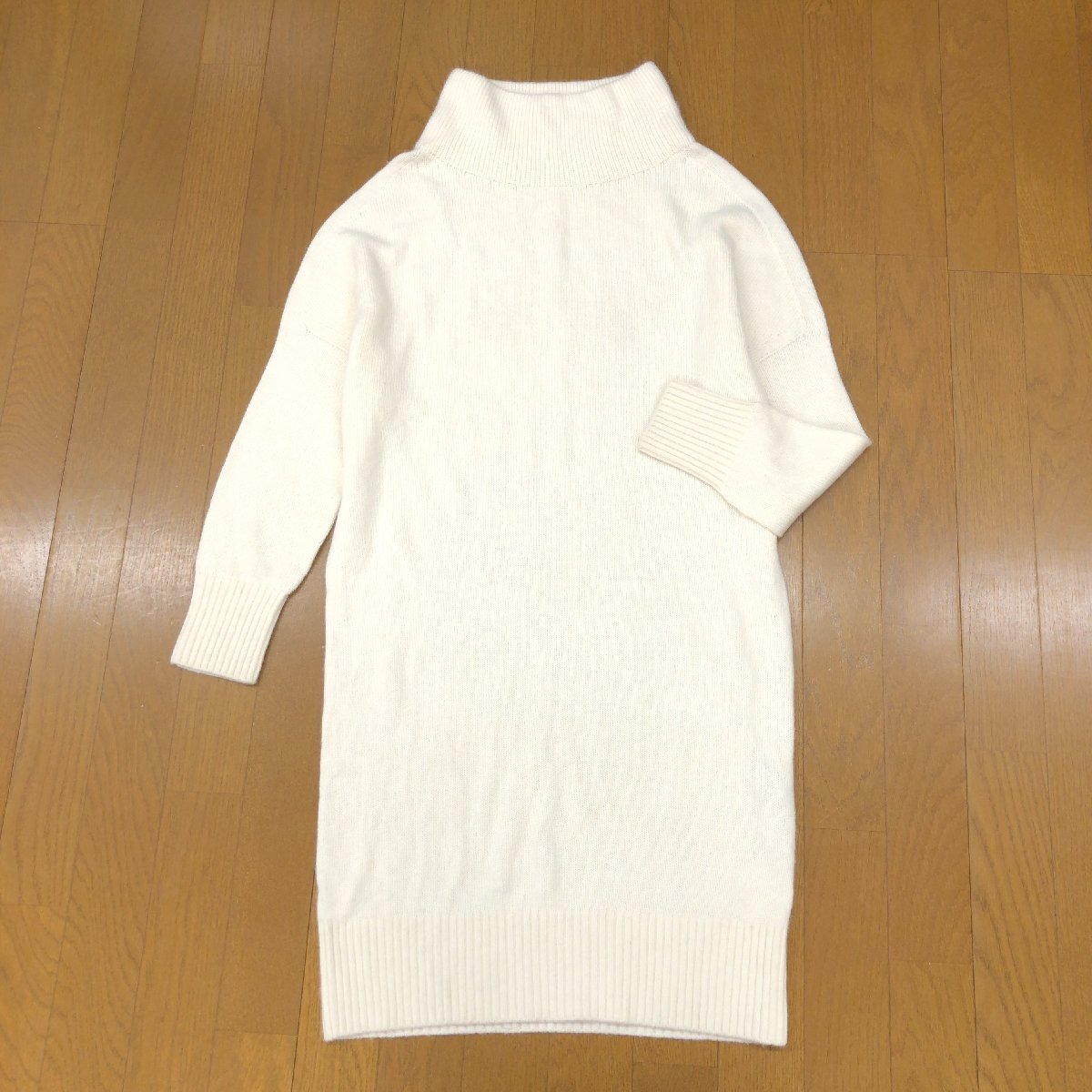 ●Spick&Span スピック&スパン ウール アンゴラ混 ハイネック ニット ワンピース F 白 ホワイト 日本製 チュニック ミディ丈 レディース