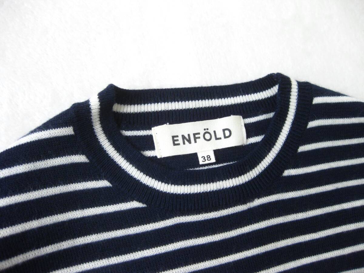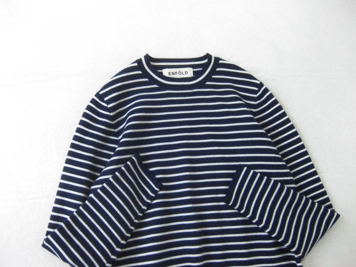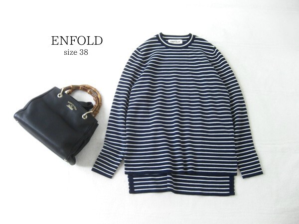 ☆エンフォルドENFOLD☆ニット☆長袖☆ボーダー柄☆38(M)☆ウール混☆クルーネック☆アクリル混☆NAVY×WHITE☆ゆったりスタイル