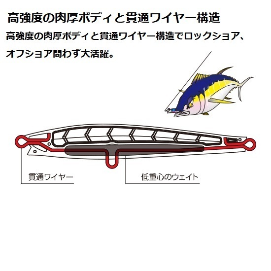 ■高強度の肉厚ボディと貫通ワイヤー構造でロックショア、オフショア問わず大活躍