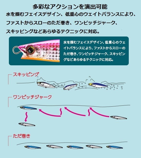 ■水を掴むフェイスデザイン、超低重心のウェイトバランスにより、ファストからスローのただ巻き、